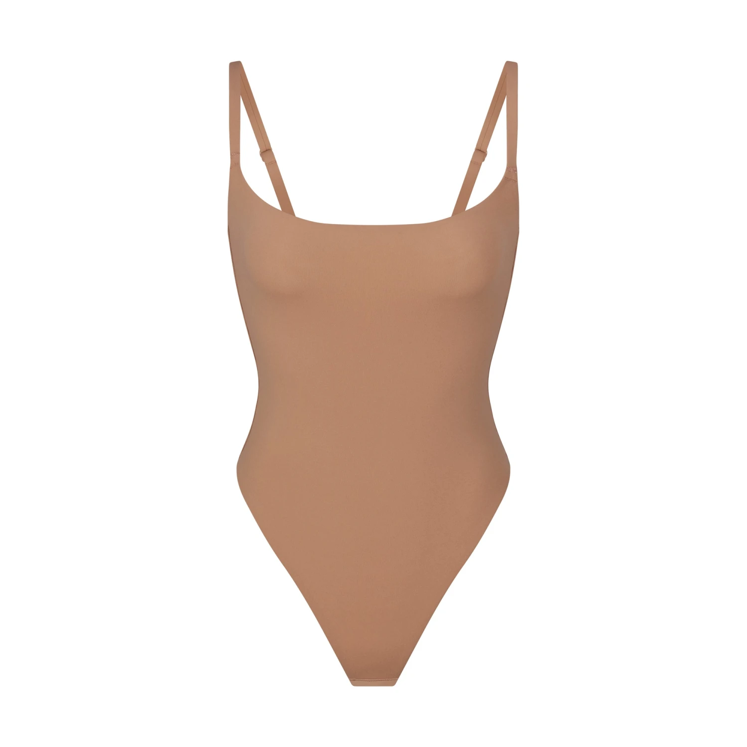 has a sexy high-cut leg opening and is made of the buttery-soft, stretchy fabric you can’t get enough of. Features fully adjustable straps and a bonded hook and eye closure on the sides and at the bottom gusset for easy dressing. Fits true to size.