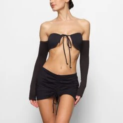 has a slinky fit that perfectly drapes your body for an effortlessly elegant look. Features spaghetti straps with a low back crisscross tie and a straight neckline. Fits true to size.