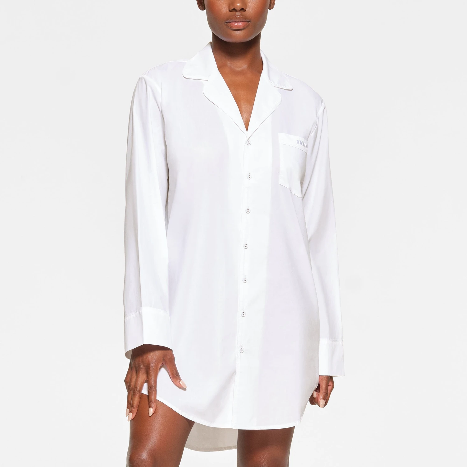 with a comfortable, lightweight feel and effortlessly elegant look. Features 100% Cotton, tonal stitching details, a front pocket, a curved shirttail hem, and delicate piping in the pocket, collar, and cuff seams. Fits true to size.