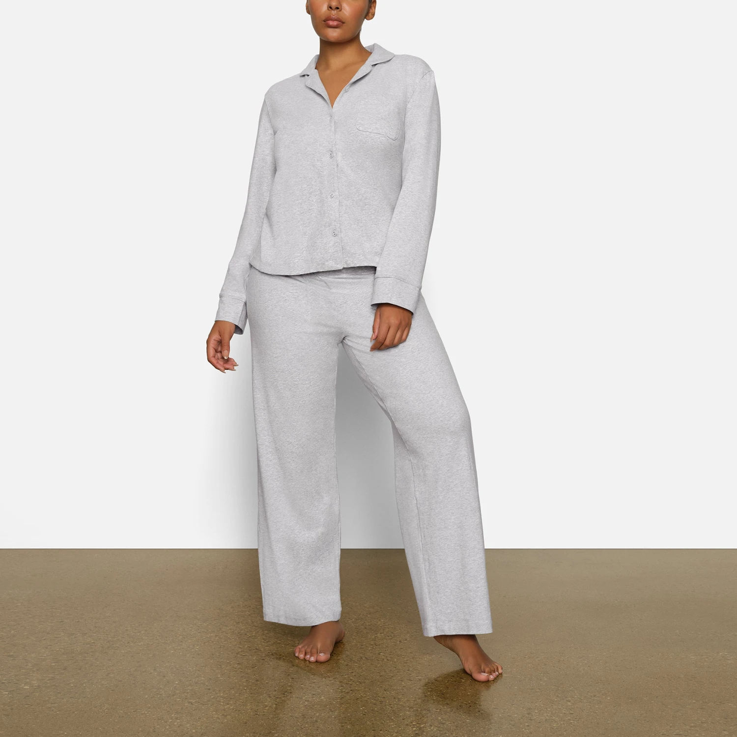 set made with the ultra-comfortable and breathable Cotton Jersey fabric you know and love. Features a button-up