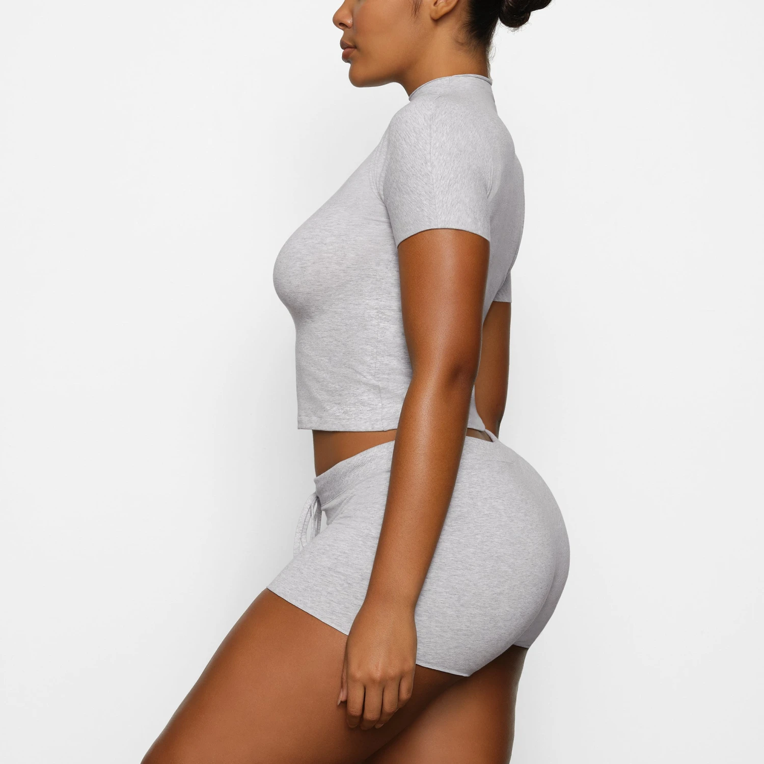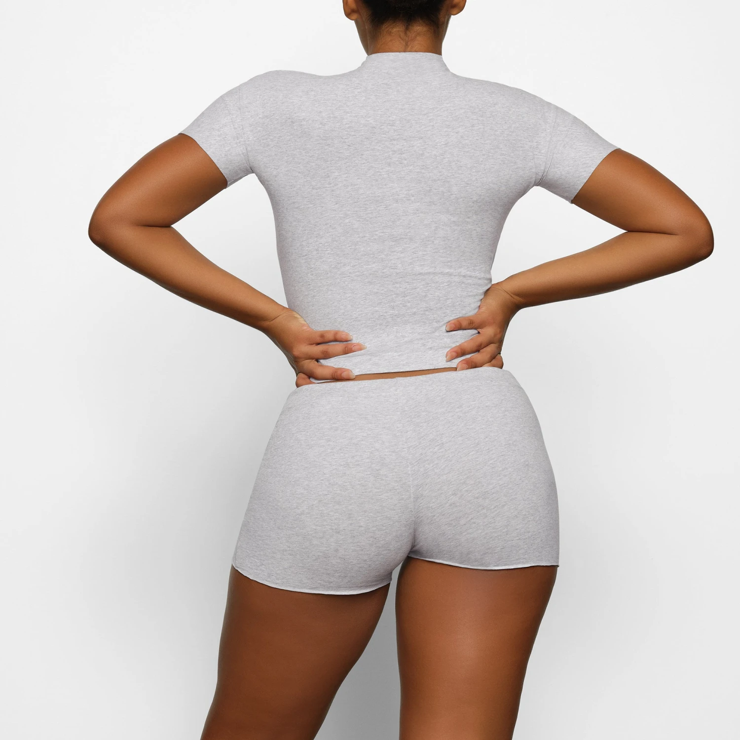in and out of bed. This comfortable silhouette is designed with our signature Cotton Jersey fabric and features raw cut edges at the sleeves and neckline with a finished bottom hem. Make it a set with the Cotton Sleep