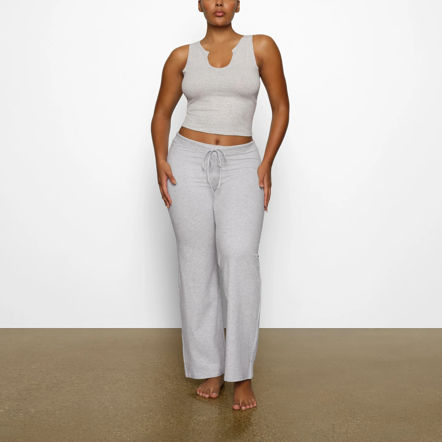 . Features raw edges at the neckline and armholes. Make it a set with the Cotton Sleep