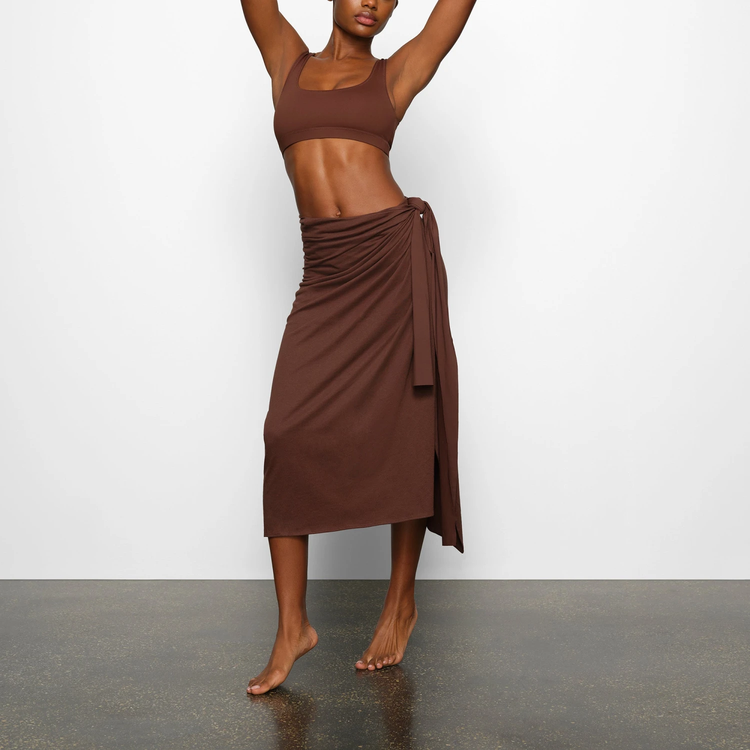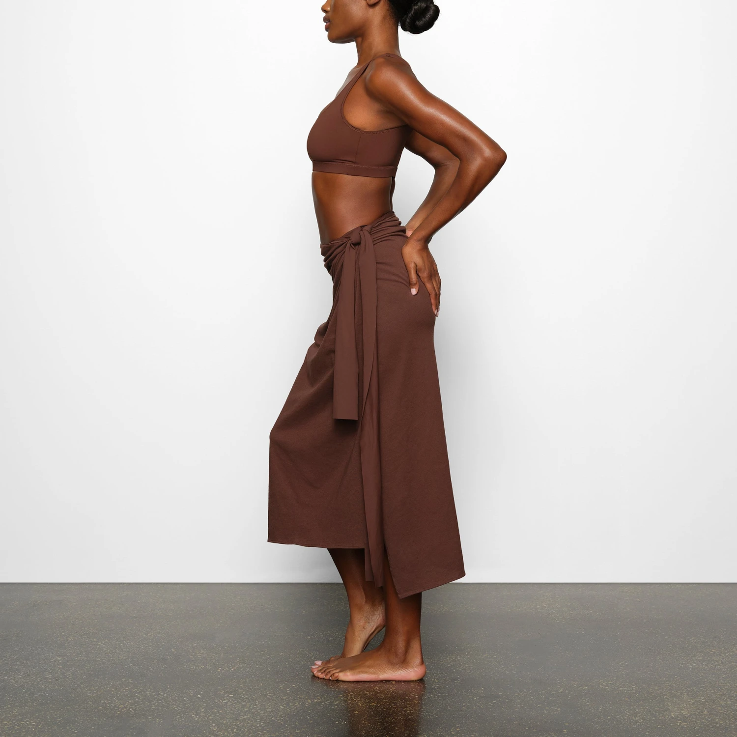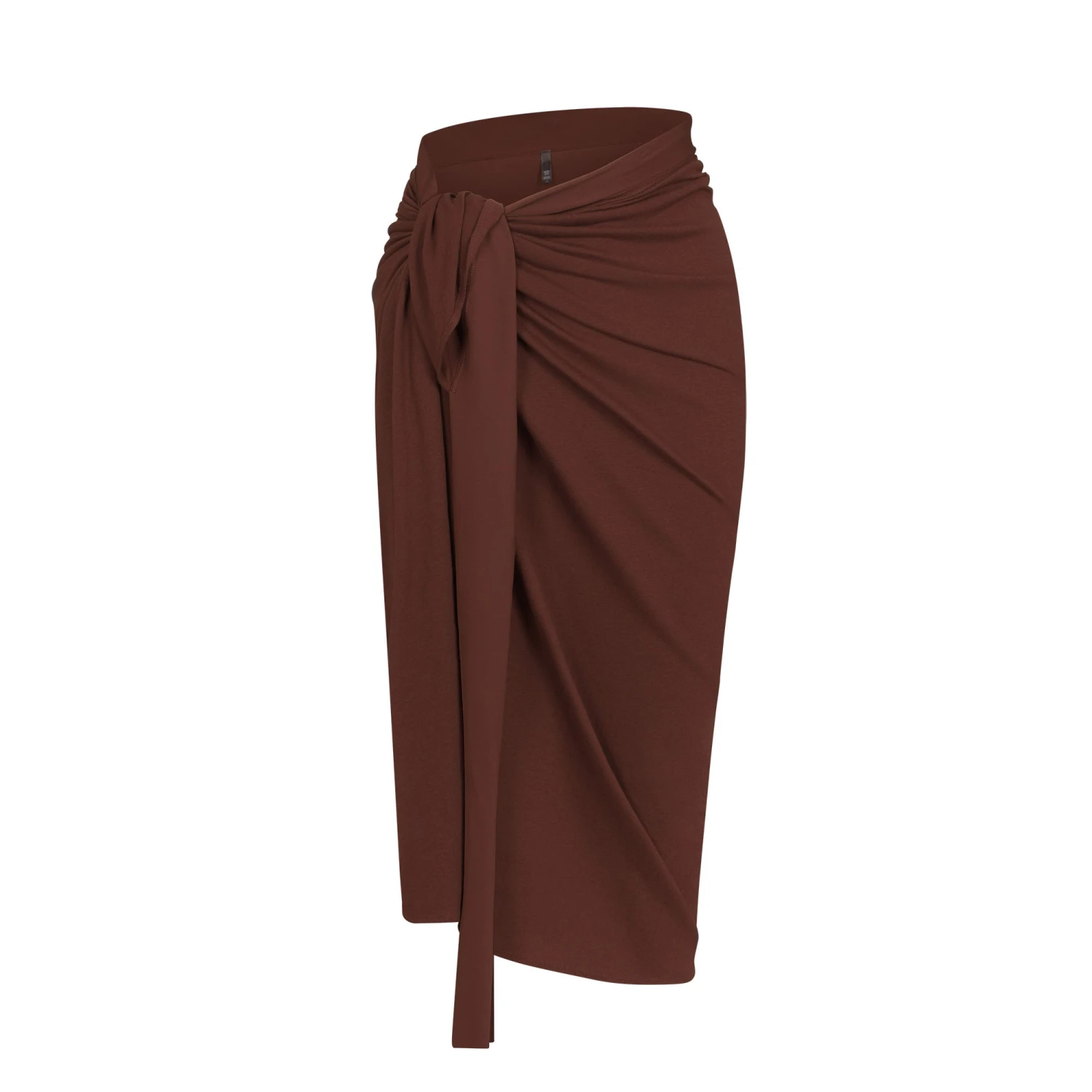 in a variety of ways for elegant looks apres-swim and beyond. Features a raw edge waistband with a side tie. Fits true to size.