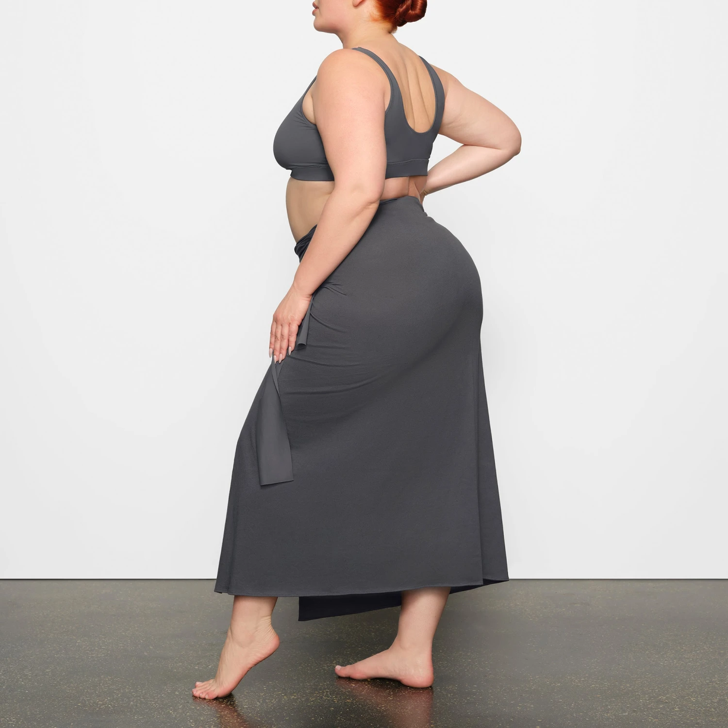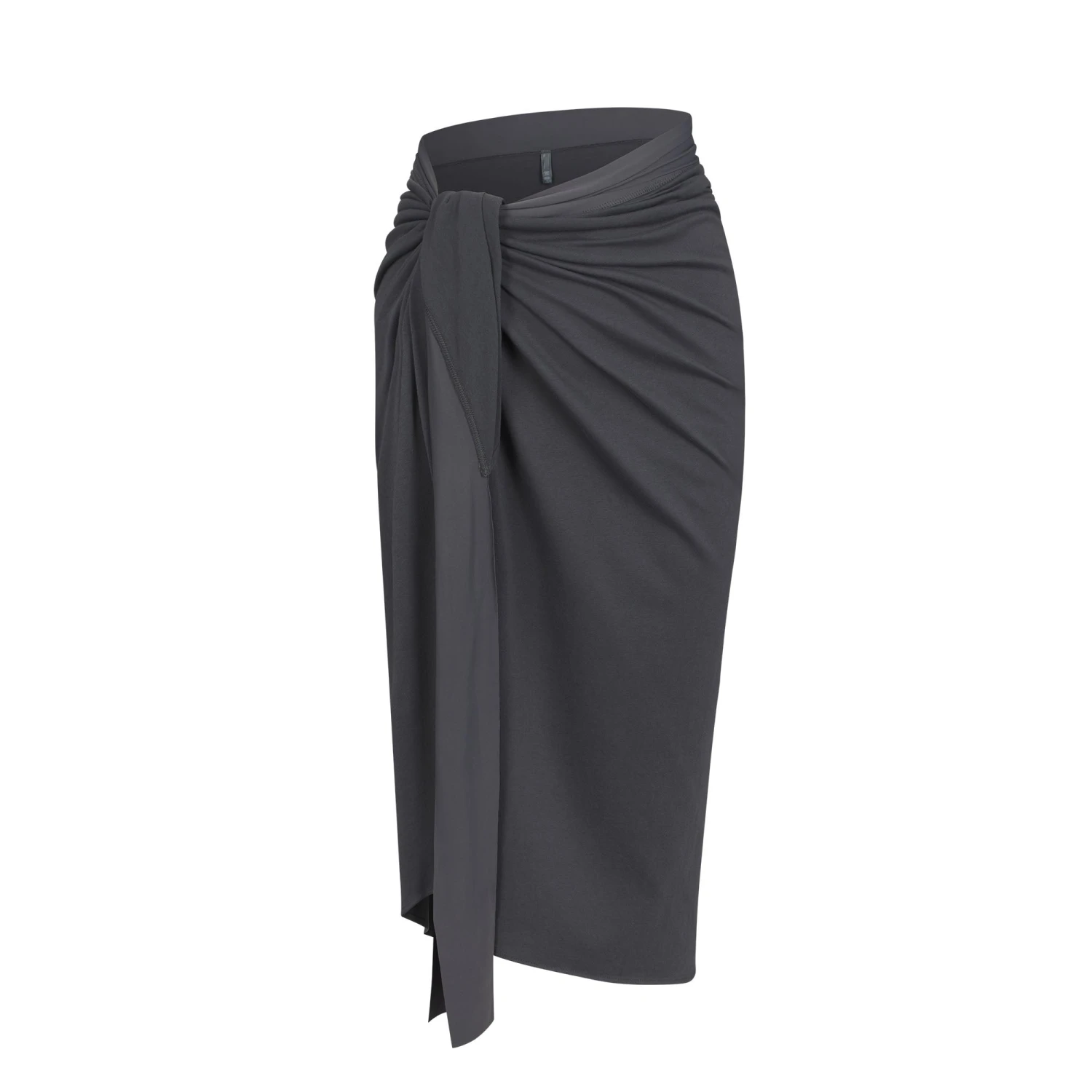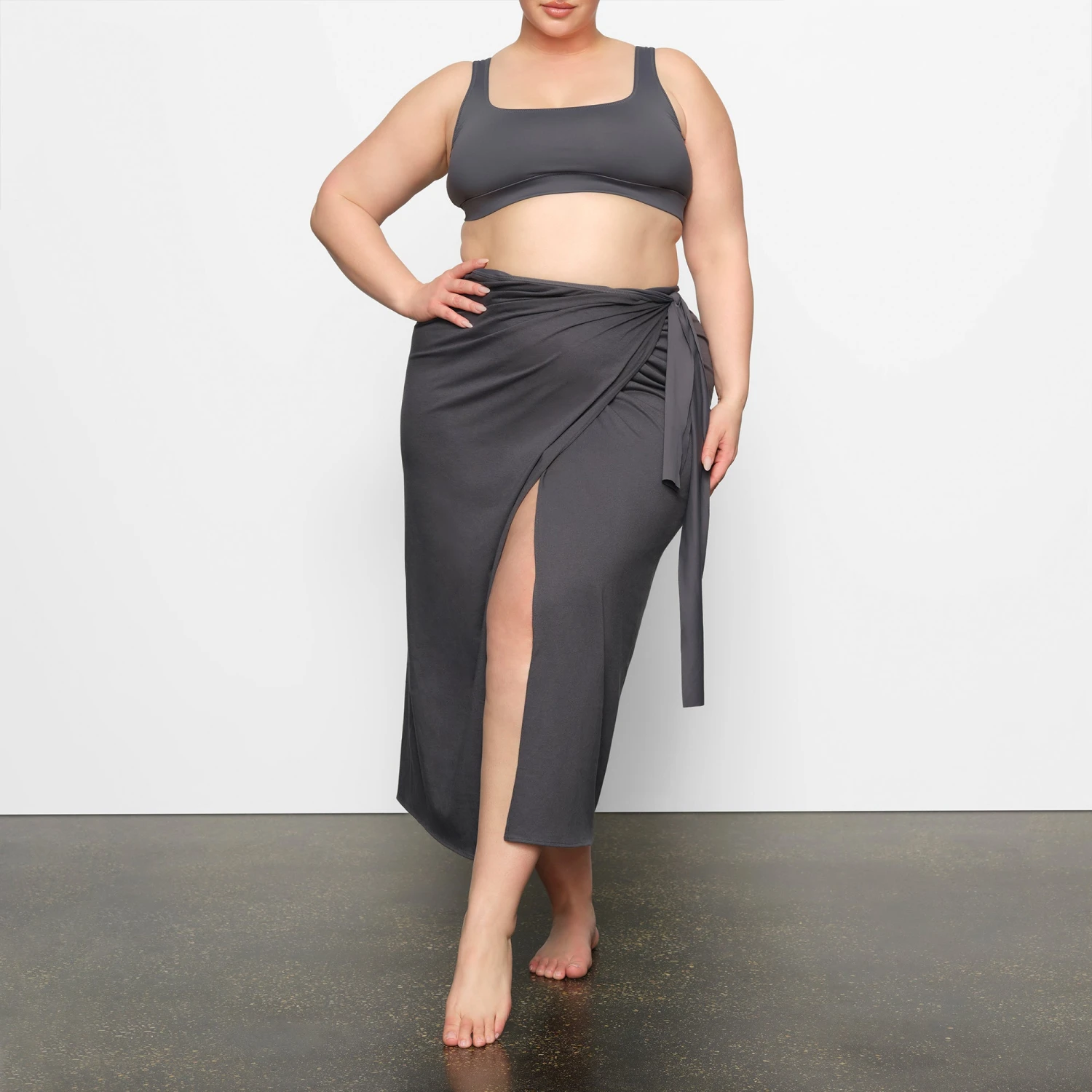 in a variety of ways for elegant looks apres-swim and beyond. Features a raw edge waistband with a side tie. Fits true to size.