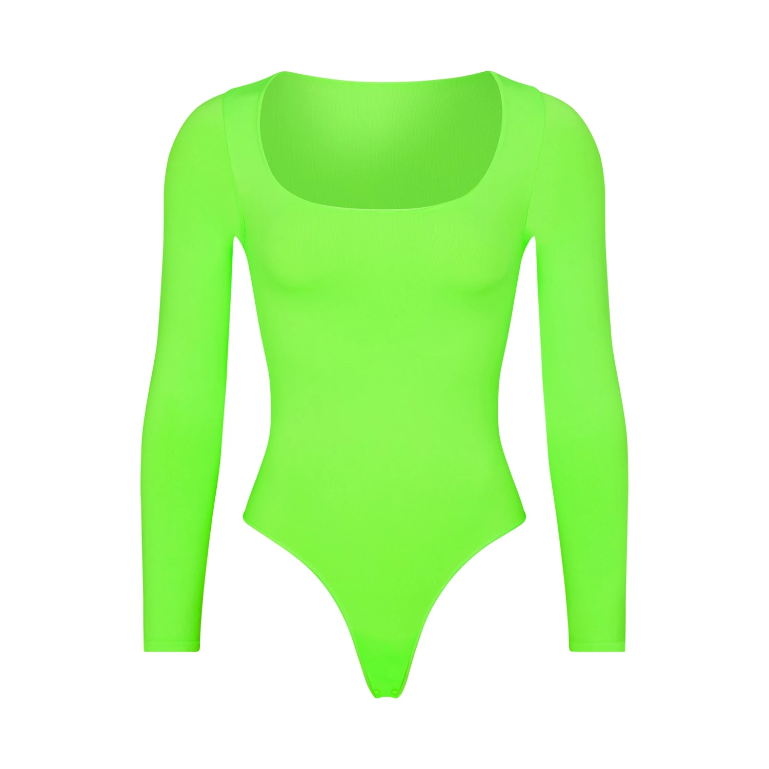 ESSENTIAL LONG SLEEVE SCOOP NECK BODYSUIT | NEON GREEN