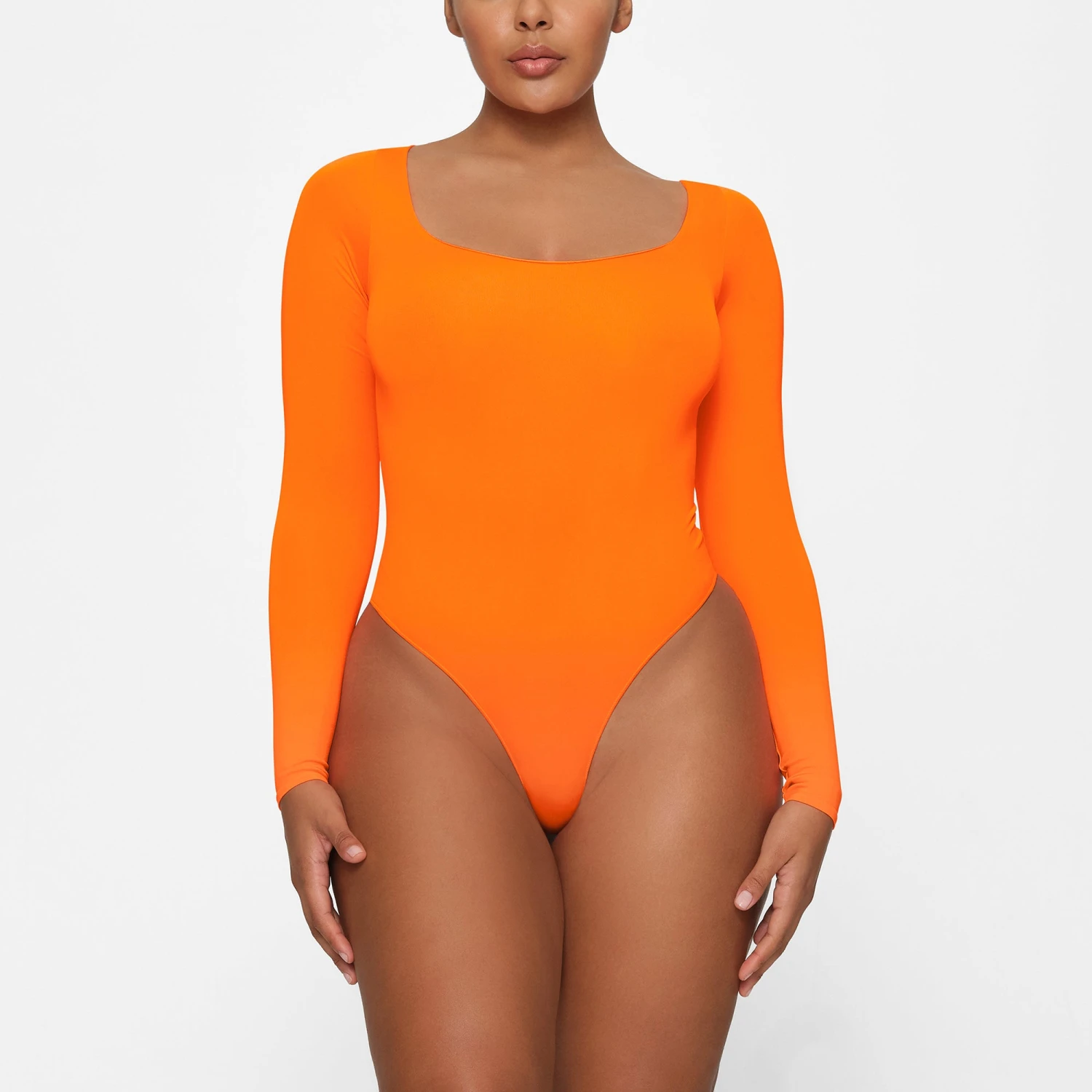 ESSENTIAL LONG SLEEVE SCOOP NECK BODYSUIT | ORANGE HIGHLIGHTER