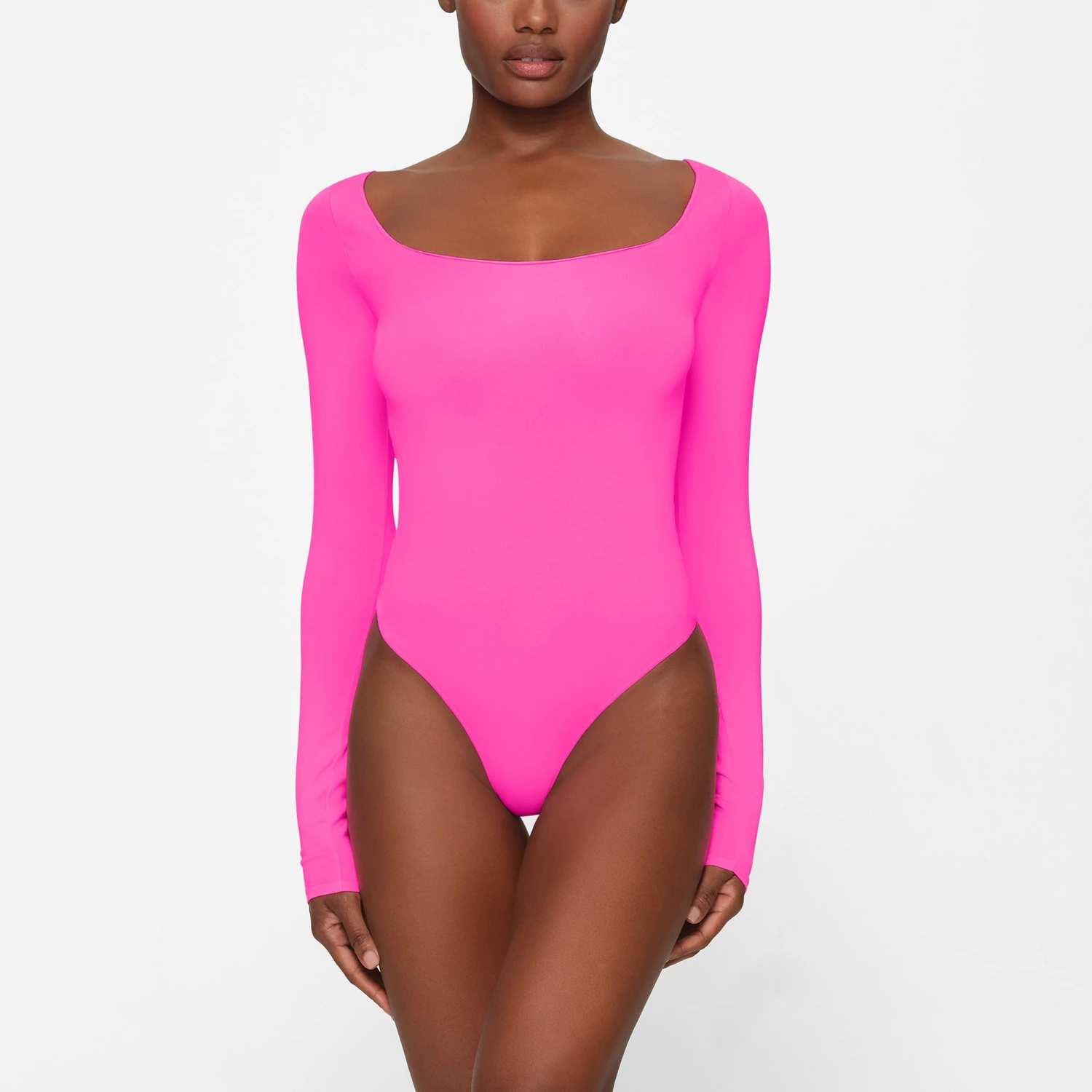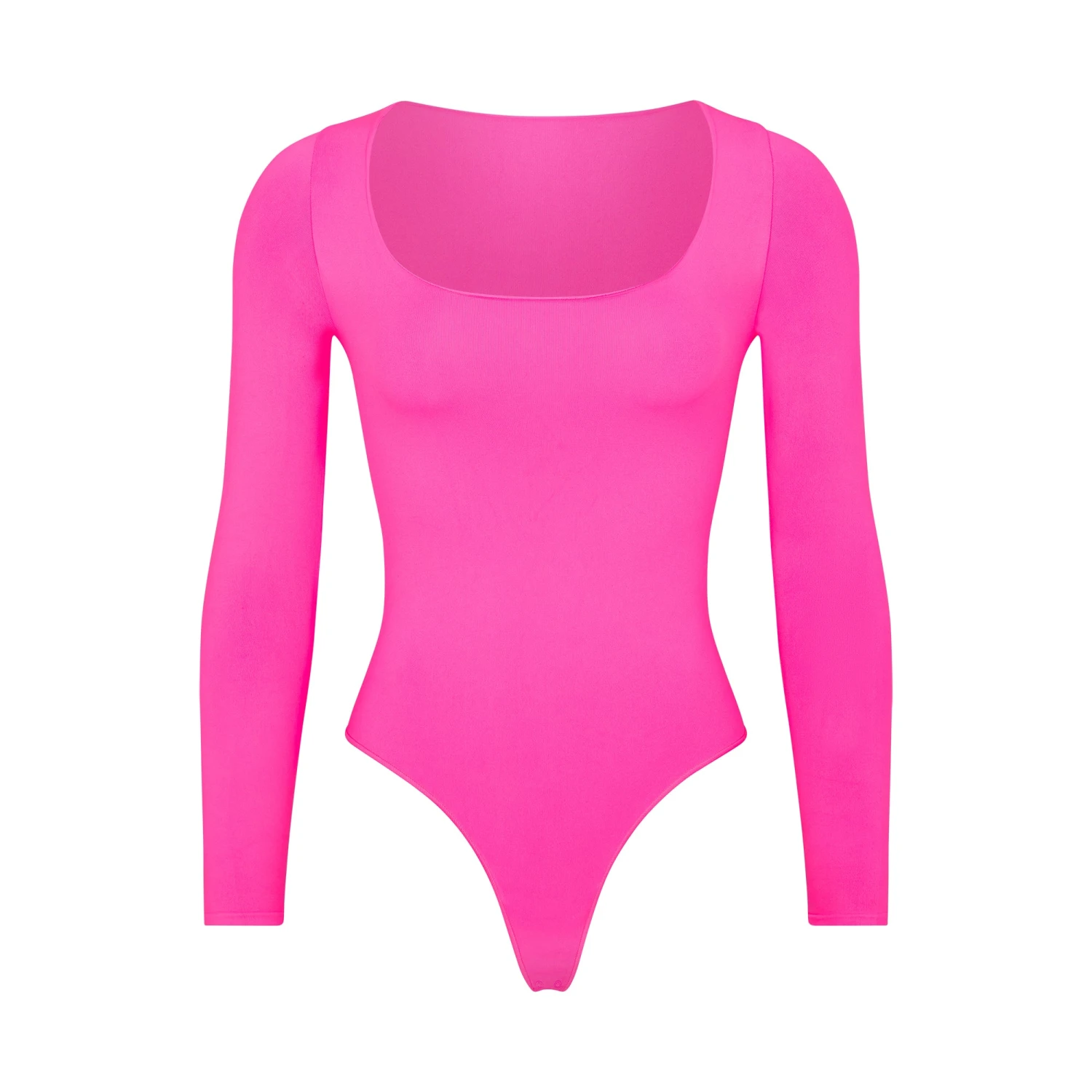 ESSENTIAL LONG SLEEVE SCOOP NECK BODYSUIT | PINK HIGHLIGHTER