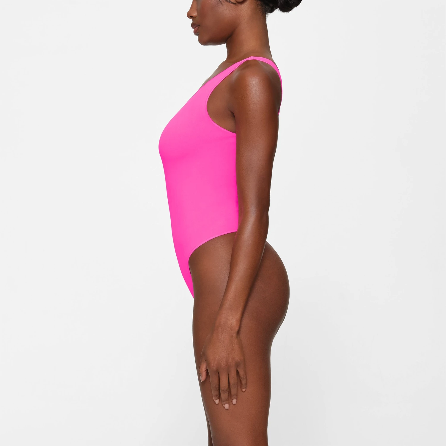 ESSENTIAL ONE SHOULDER BODYSUIT | PINK HIGHLIGHTER