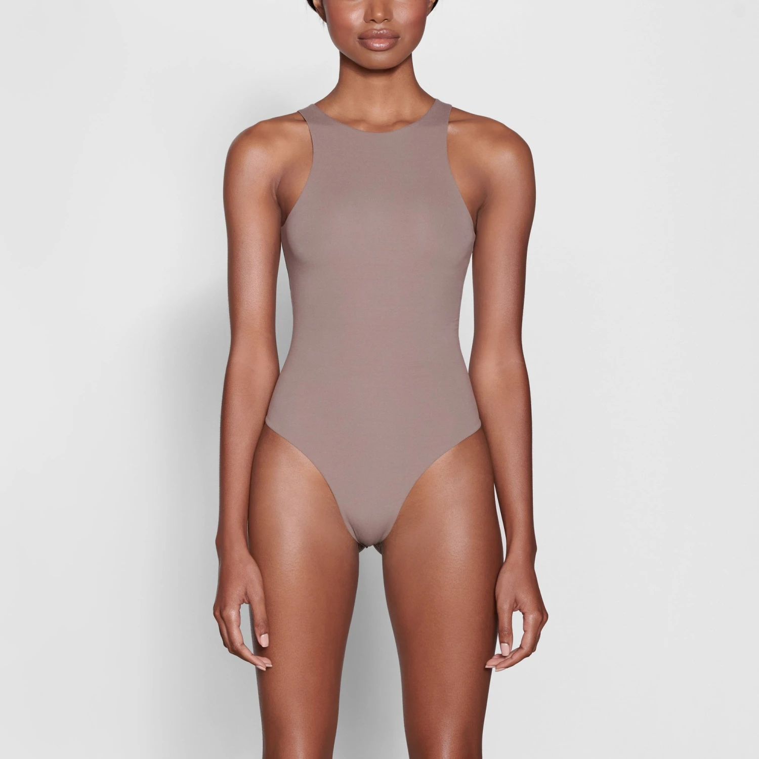 provides coverage and supportive stretch that hugs your body. This bodysuit is the perfect base layer and features a high cut leg opening and thong back that remains invisible under clothing.