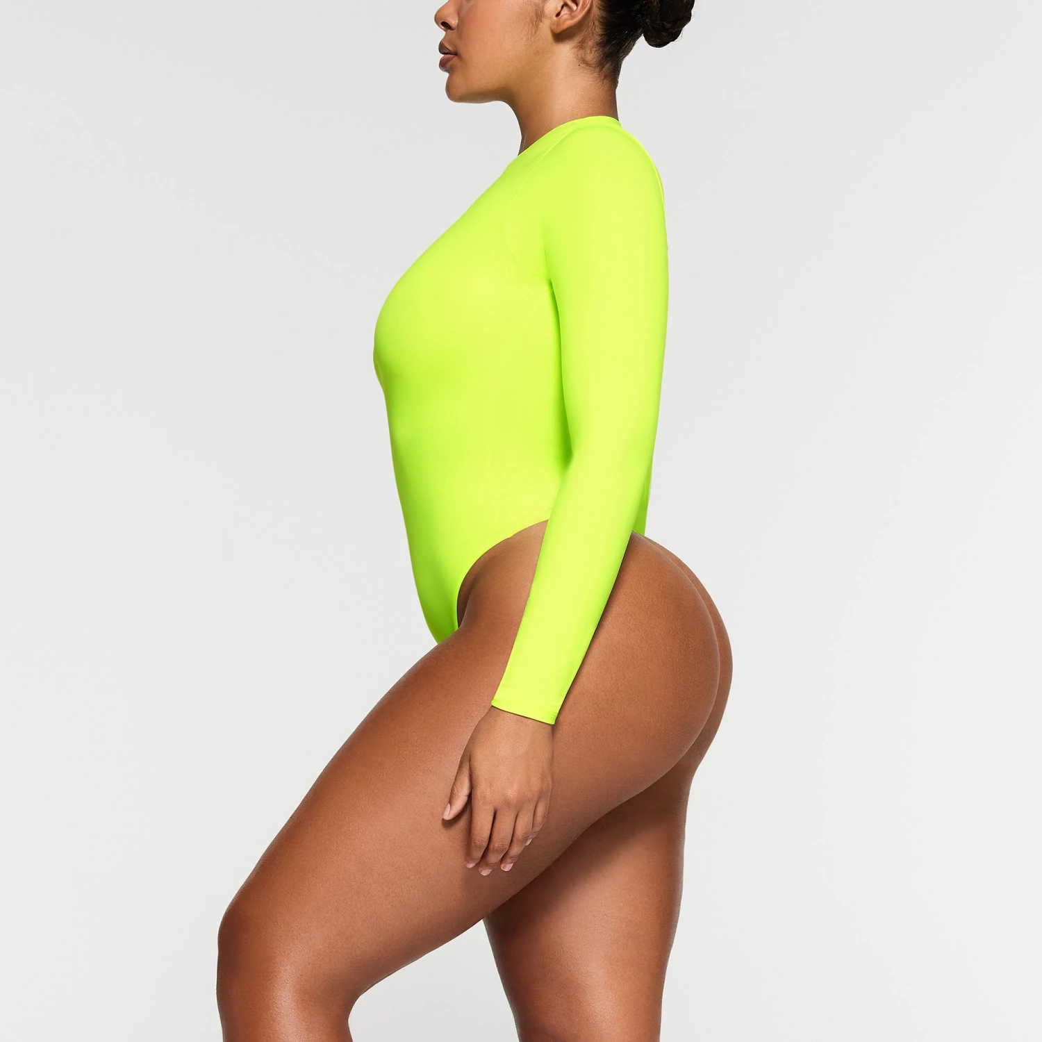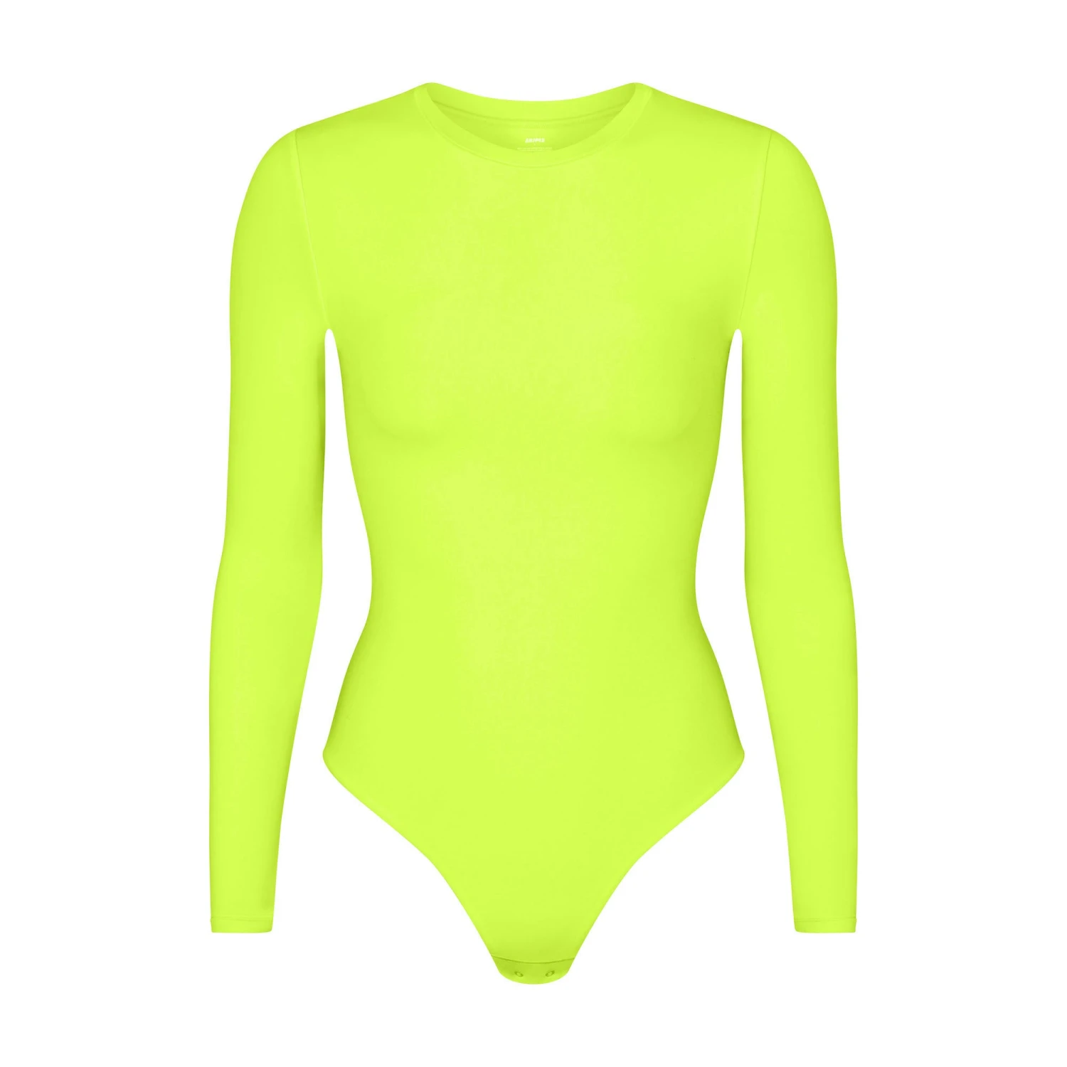 FITS EVERYBODY LONG SLEEVE CREW NECK BODYSUIT | GREEN HIGHLIGHTER