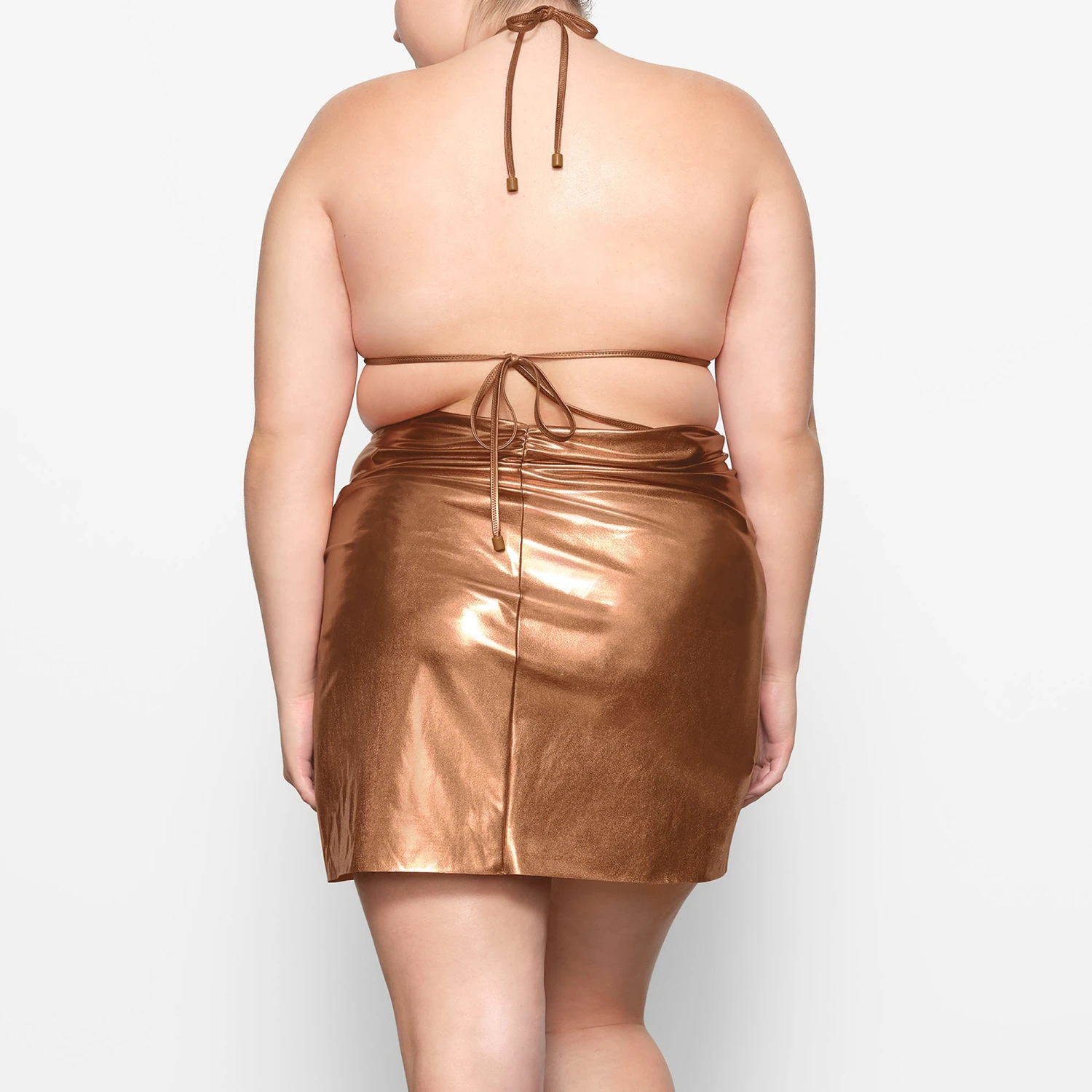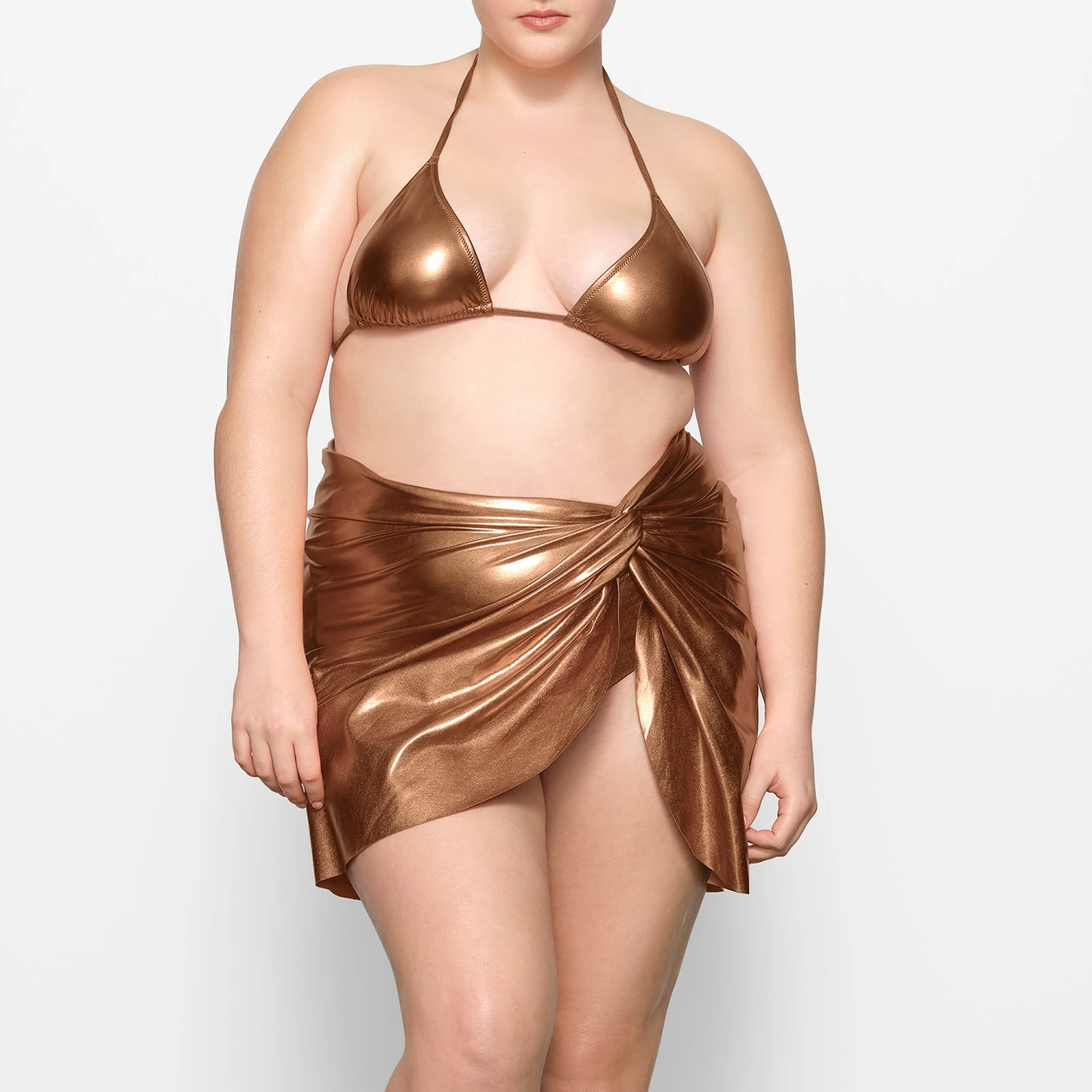 . Features a front slit and fixed knot details at the side waist. Pair with coordinating