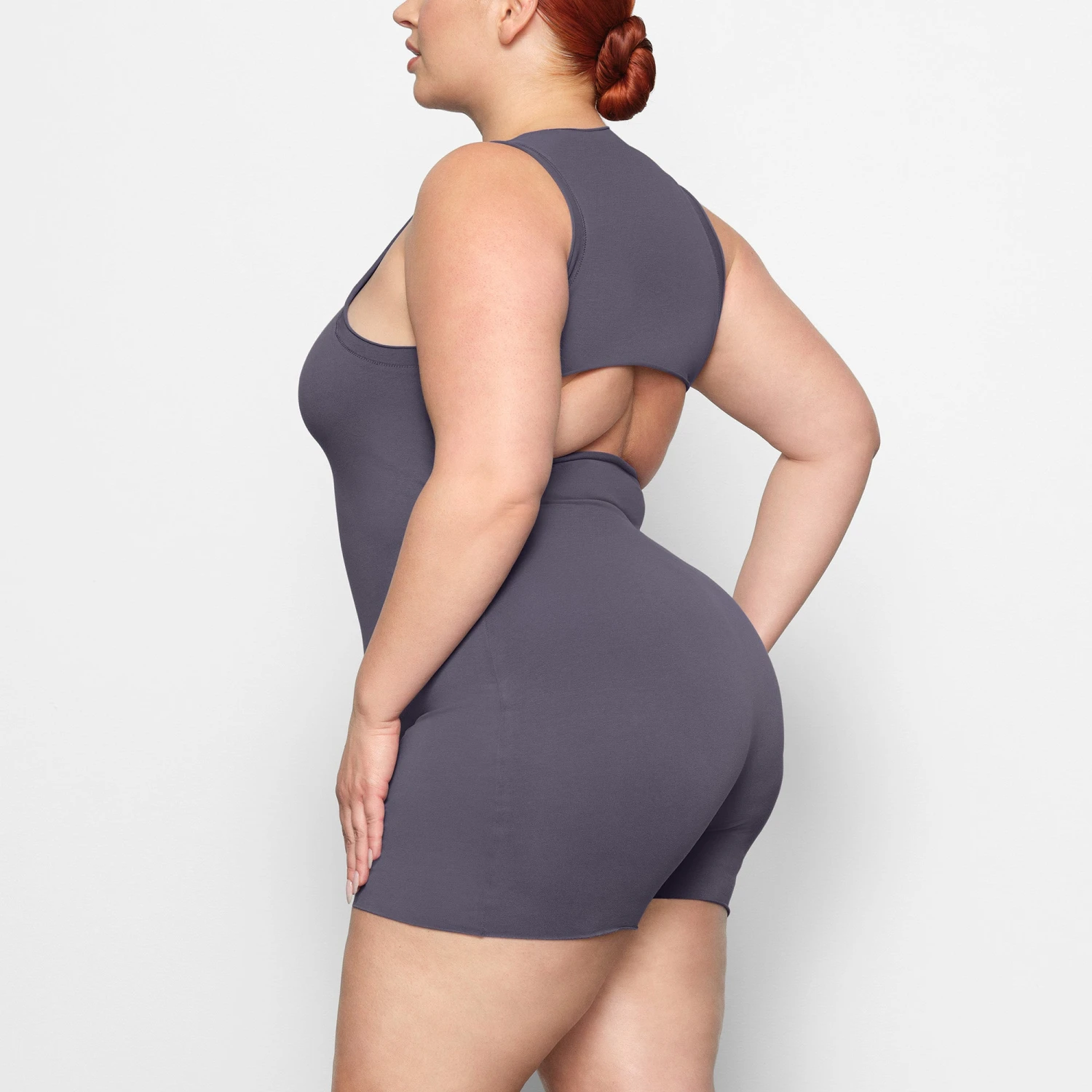 has a sporty-chic look you’ll love. Features open back details and raw-cut edges for a seamless look. Fits true to size.