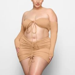 has delicate lace trims along the neckline and arm opening and repeating SKIMS logo with the prettiest rhinestone details. Features a wide scoop neckline, adjustable straps, and rosette accents at strap peaks. Perfect to wear layered or on its own. Fits true to size.