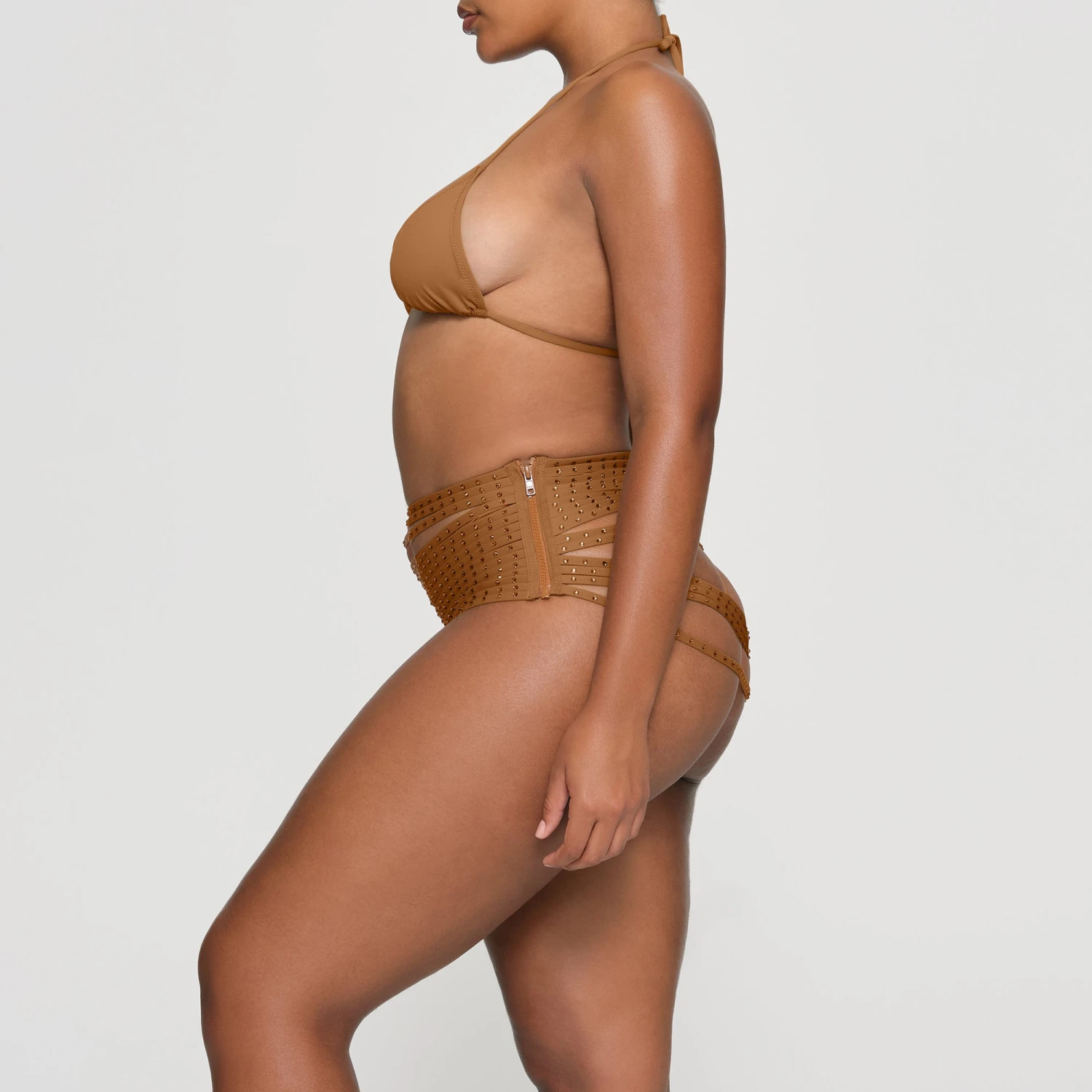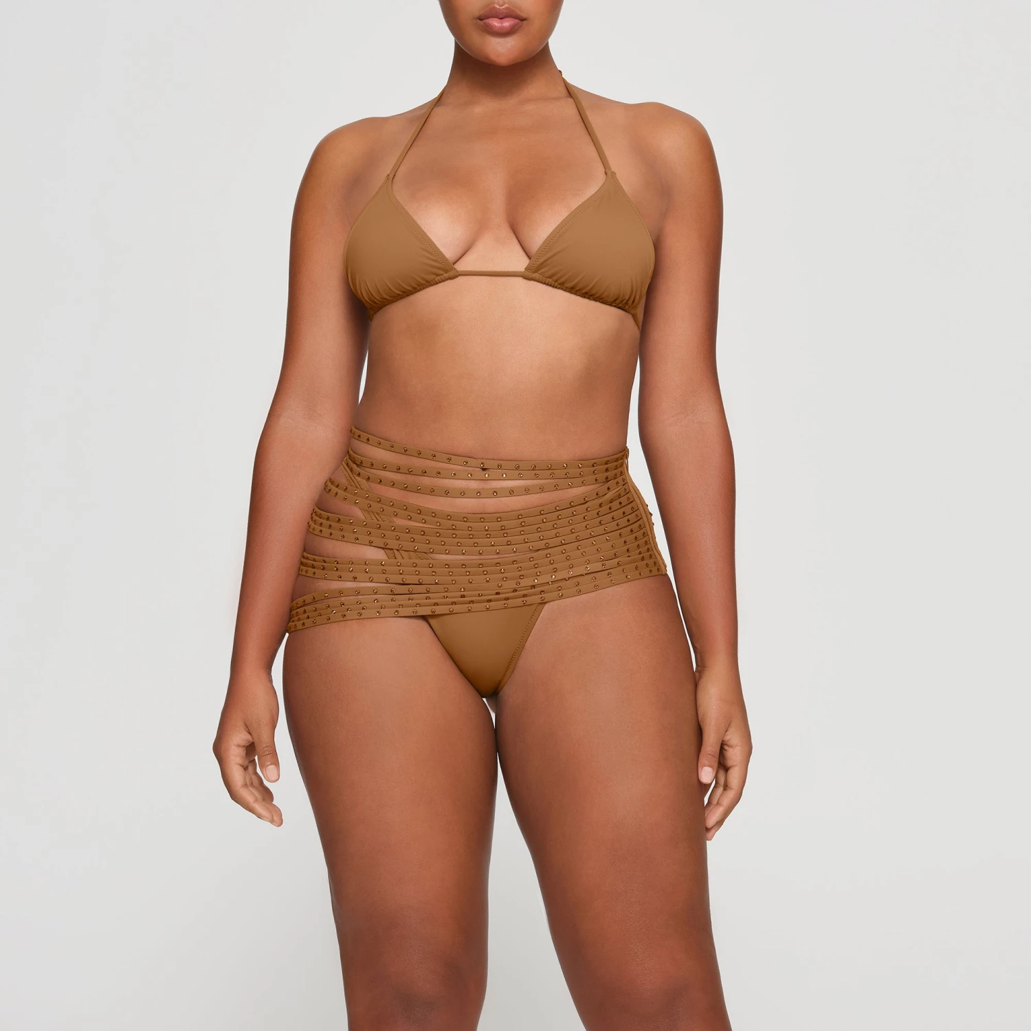is a styling must-have for your hottest days by the water. Features tonal rhinestone details and a side zip closure. Pair with your favorite