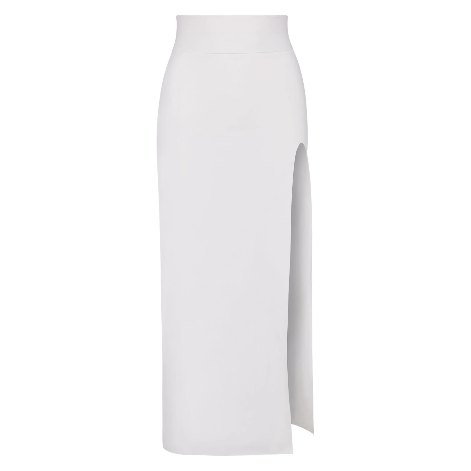 This elegant maxi skirt will elevate any swim look while smoothing your thighs and butt. Features a high front leg slit and foldover waistband. Fits true to size.