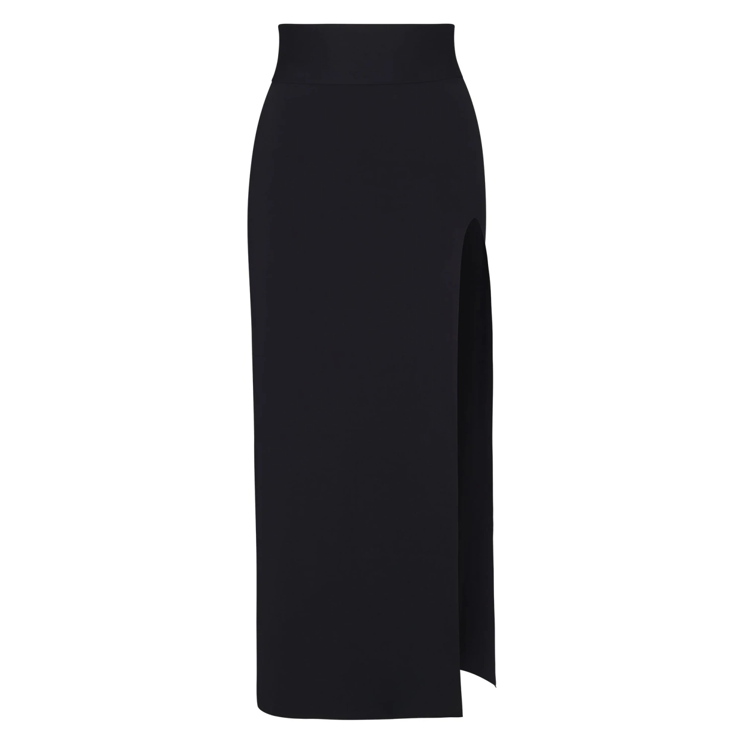 This elegant maxi skirt will elevate any swim look while smoothing your thighs and butt. Features a high front leg slit and foldover waistband. Fits true to size.