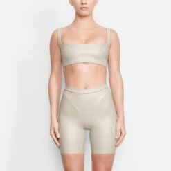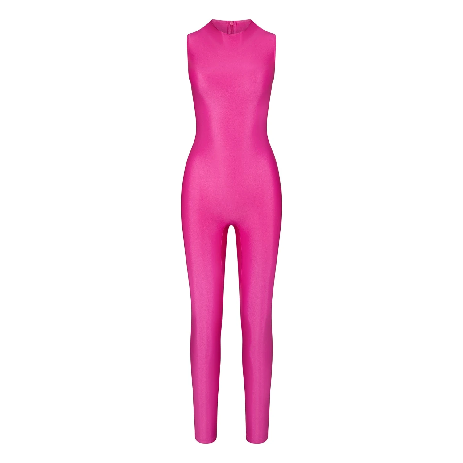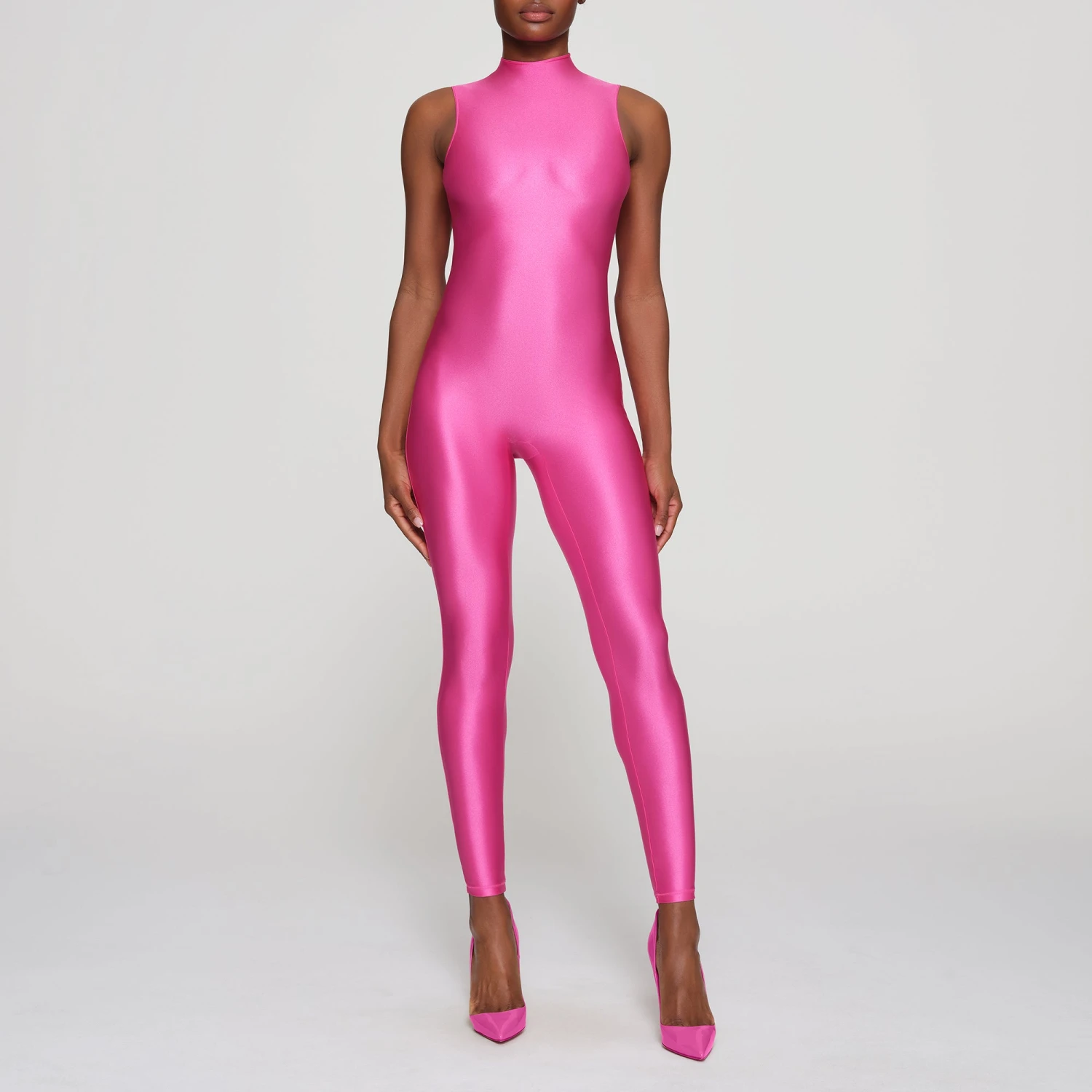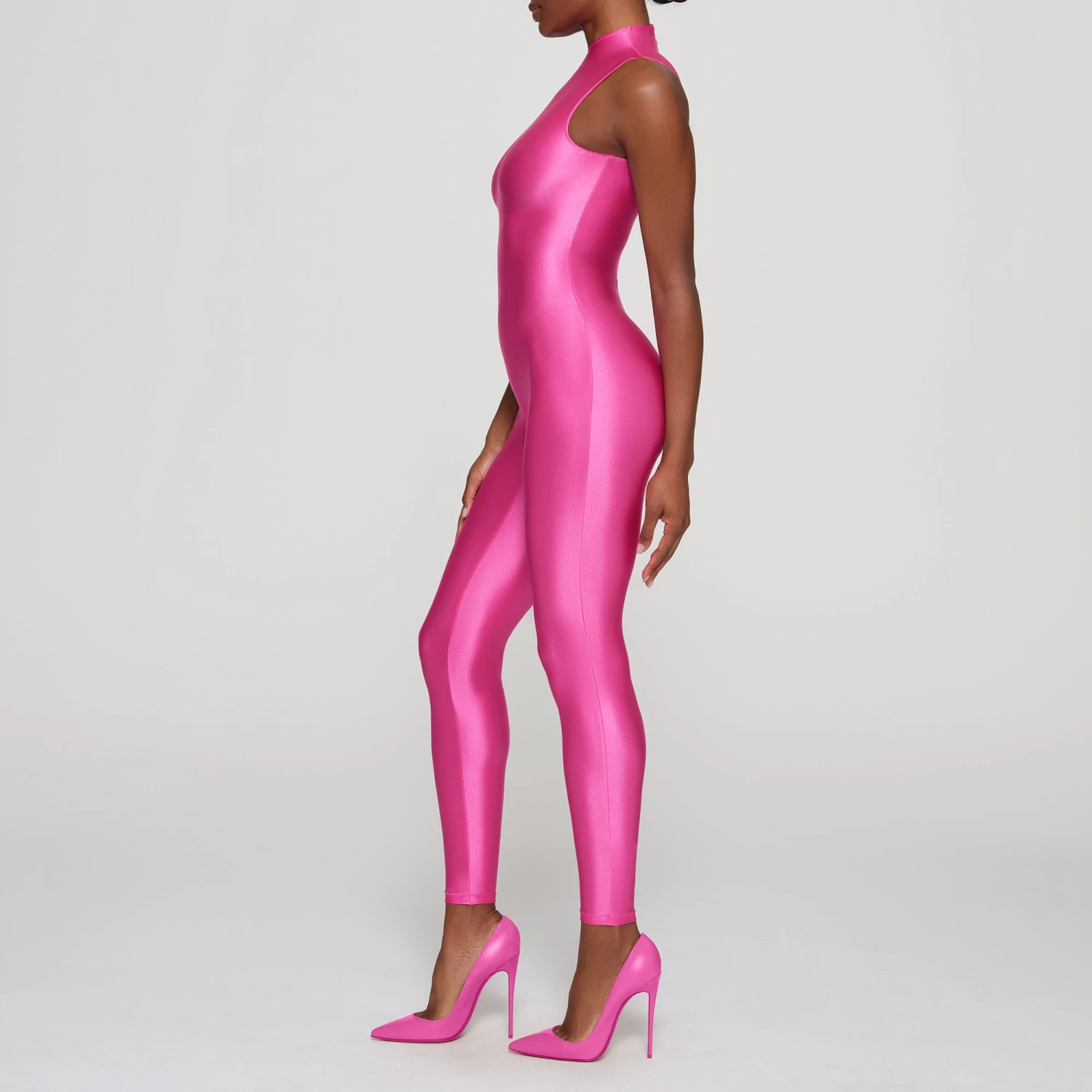 to show off your figure with its curve-hugging fit and glossy, statement-making look. Features a mock neckline and zipper at the center back. Fits true to size.
