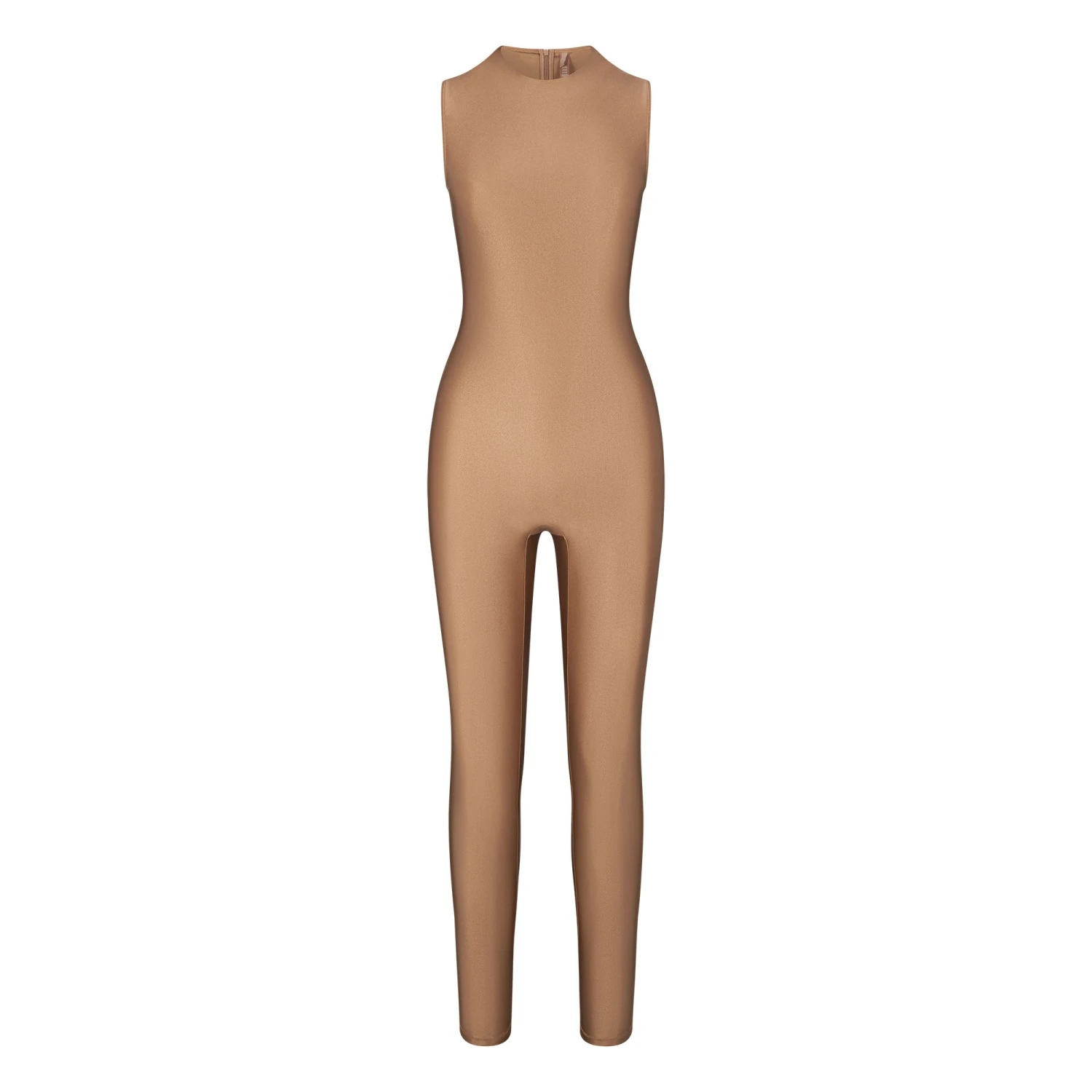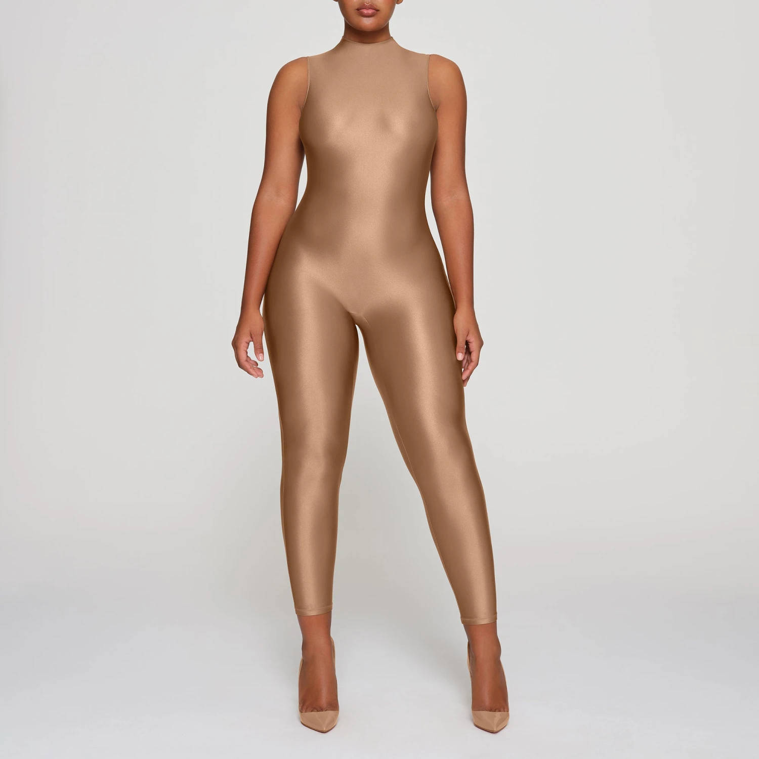 to show off your figure with its curve-hugging fit and glossy, statement-making look. Features a mock neckline and zipper at the center back. Fits true to size.