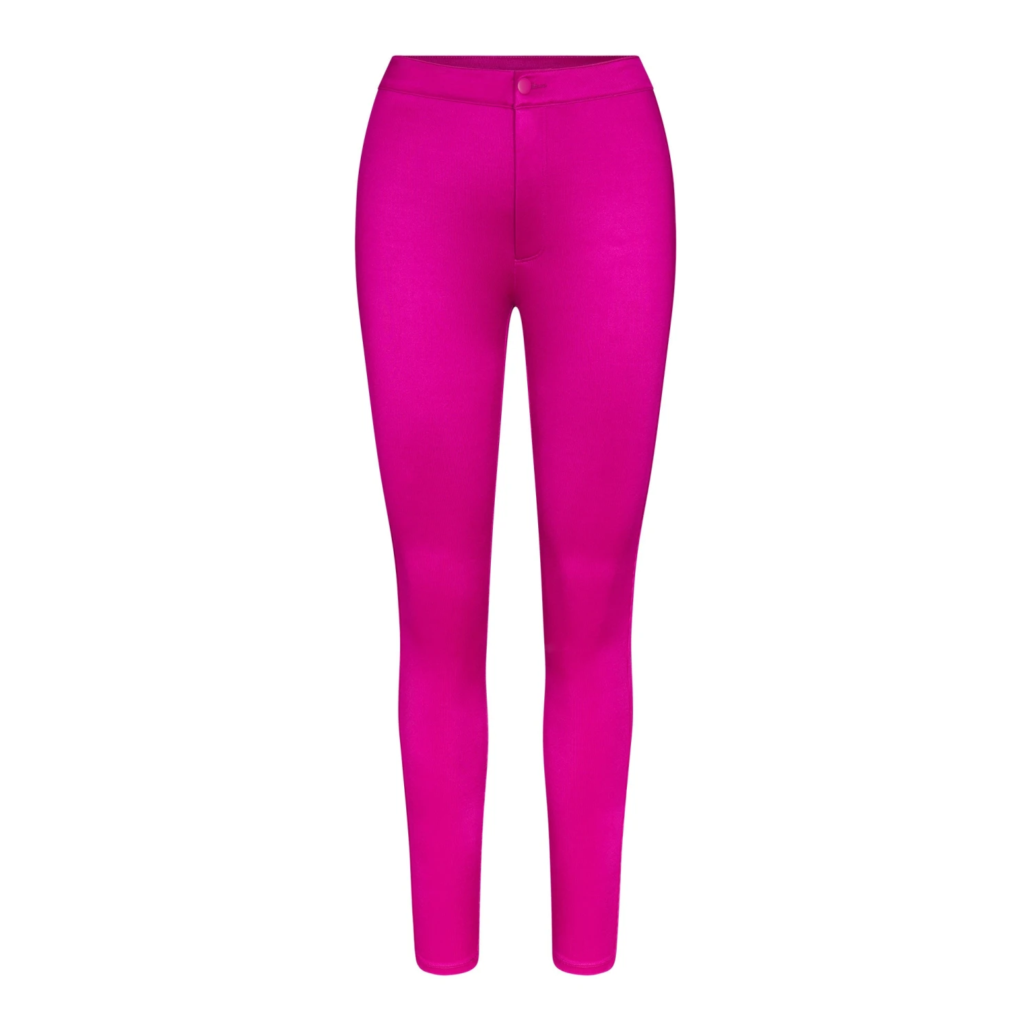 for a tonal look. Features a high-rise fit, single button, hidden zipper closure, and back patch pockets. Fits true to size.