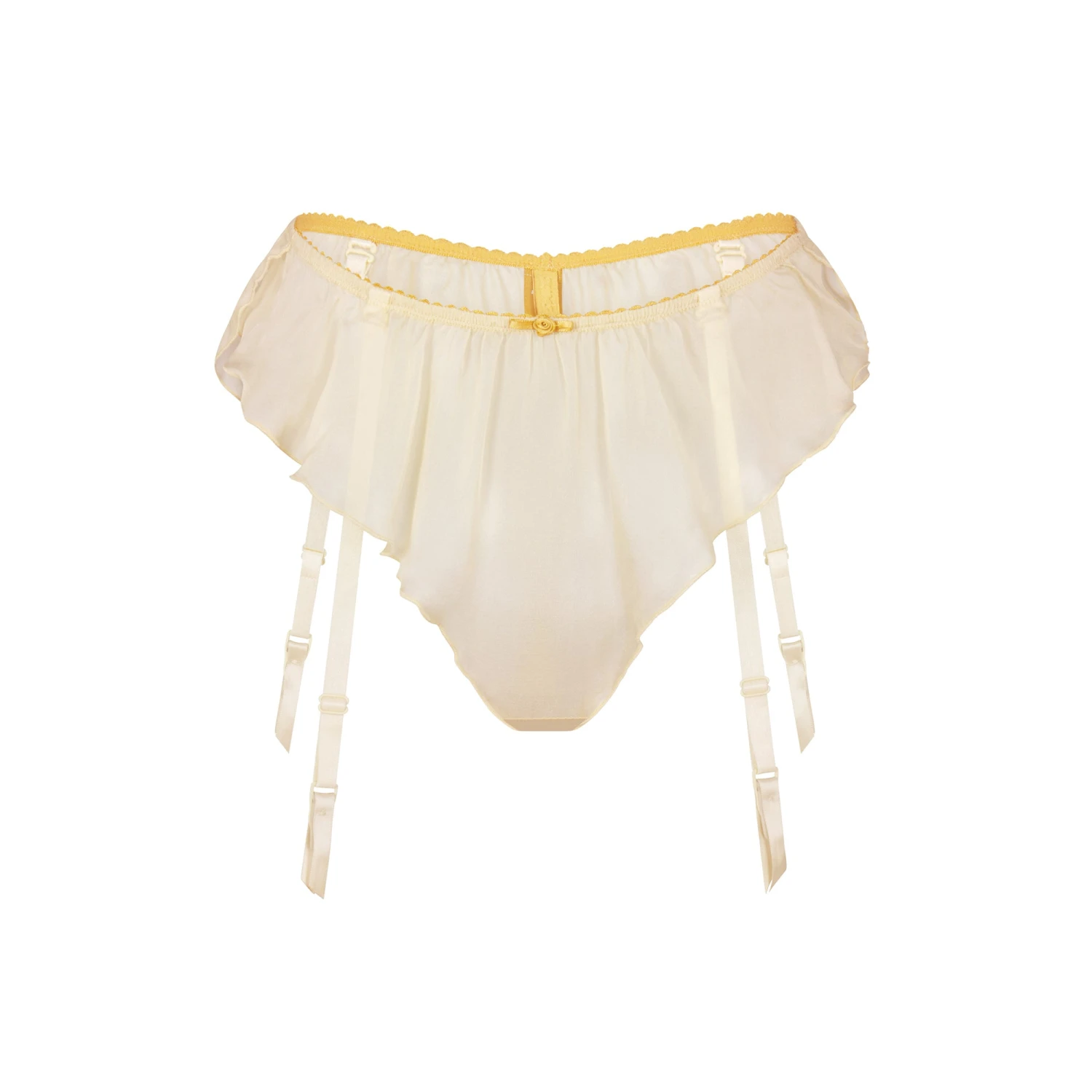 A flirty sheer lingerie bottom with a silky soft feel, removable garter straps, and a feminine center front rosette detail. Features a cotton gusset lining. Complete your lingerie look with a