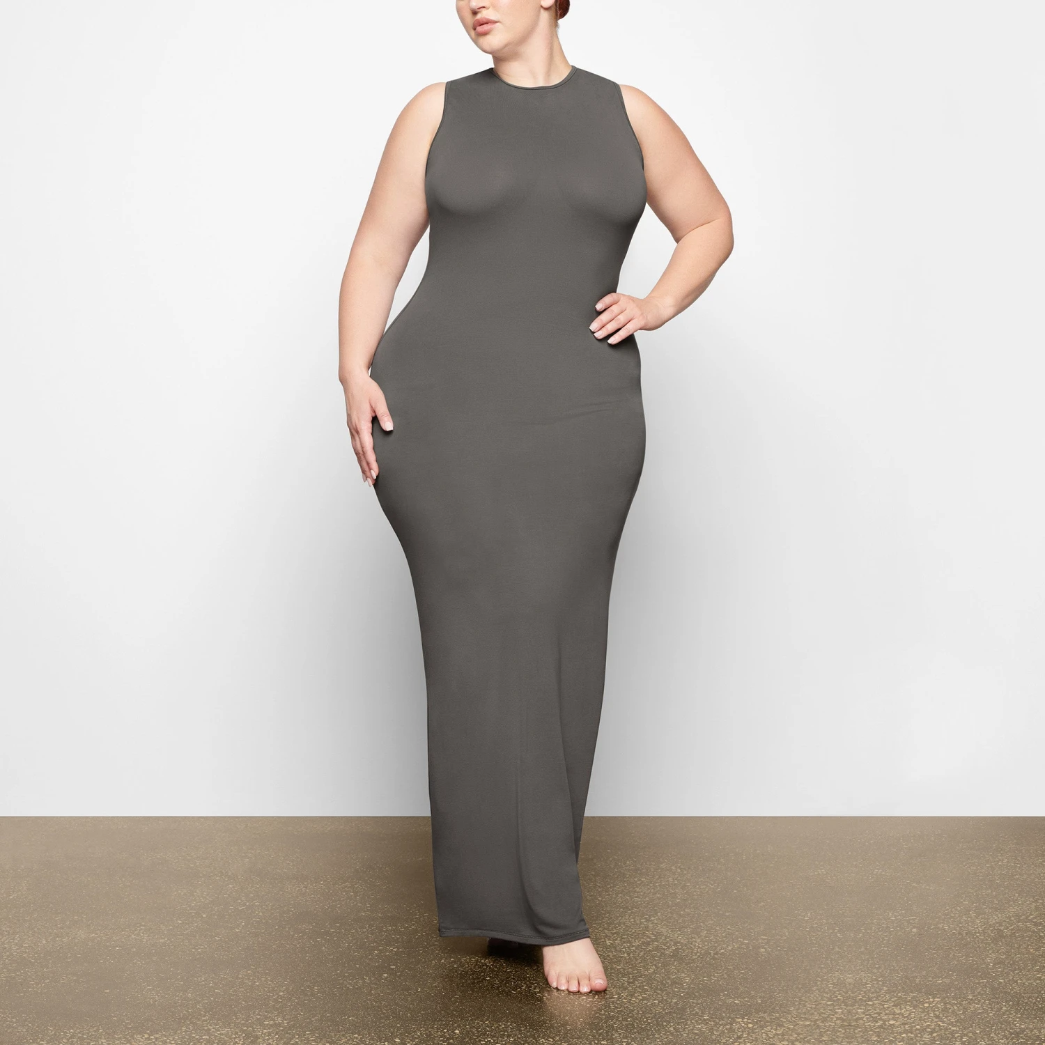 SMOOTH LOUNGE CREW NECK SLEEVELESS DRESS | GUNMETAL