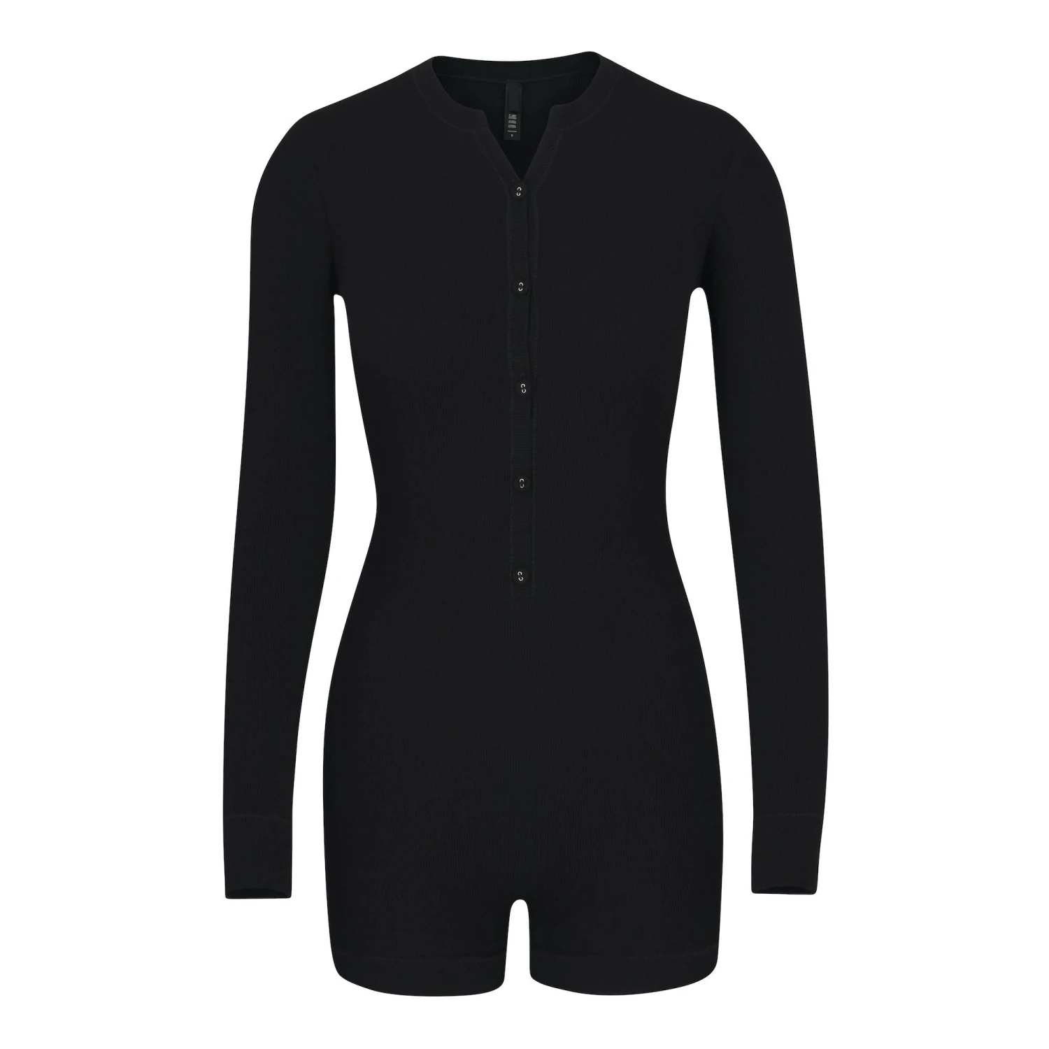 go-to, with a soft and slinky fabric. It features a scoop neckline with henley button front closures.