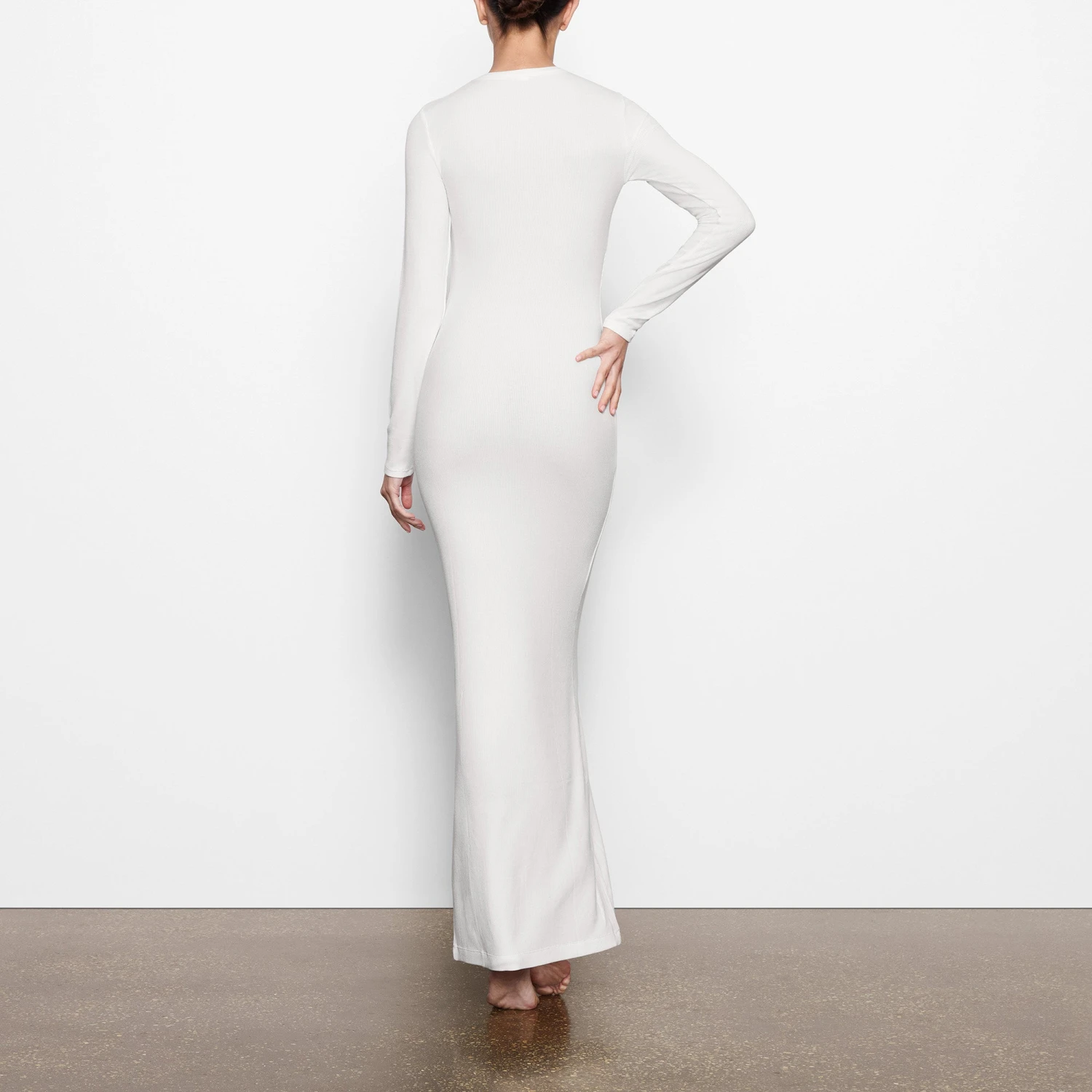 Your favorite loungewear dress just got a whole new look. Its long sleeves, body-hugging fit, and brand-new crew neckline make it the perfect full-coverage layering staple—indoors or outside. Fits true to size.