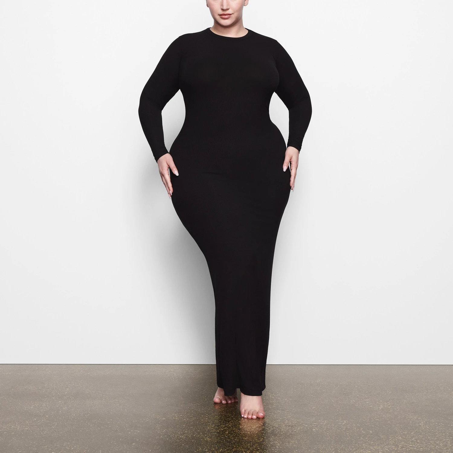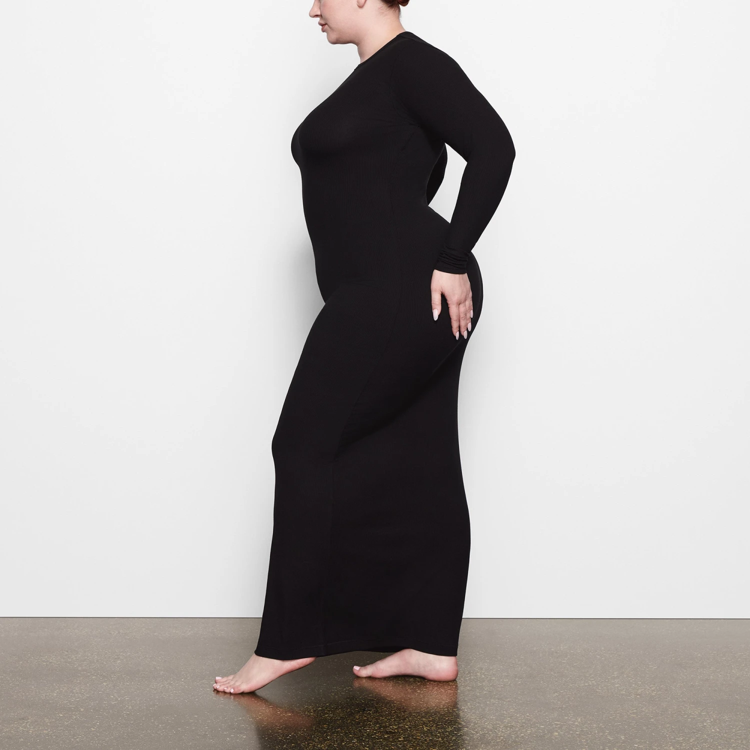 SOFT LOUNGE CREW NECK LONG DRESS | ONYX