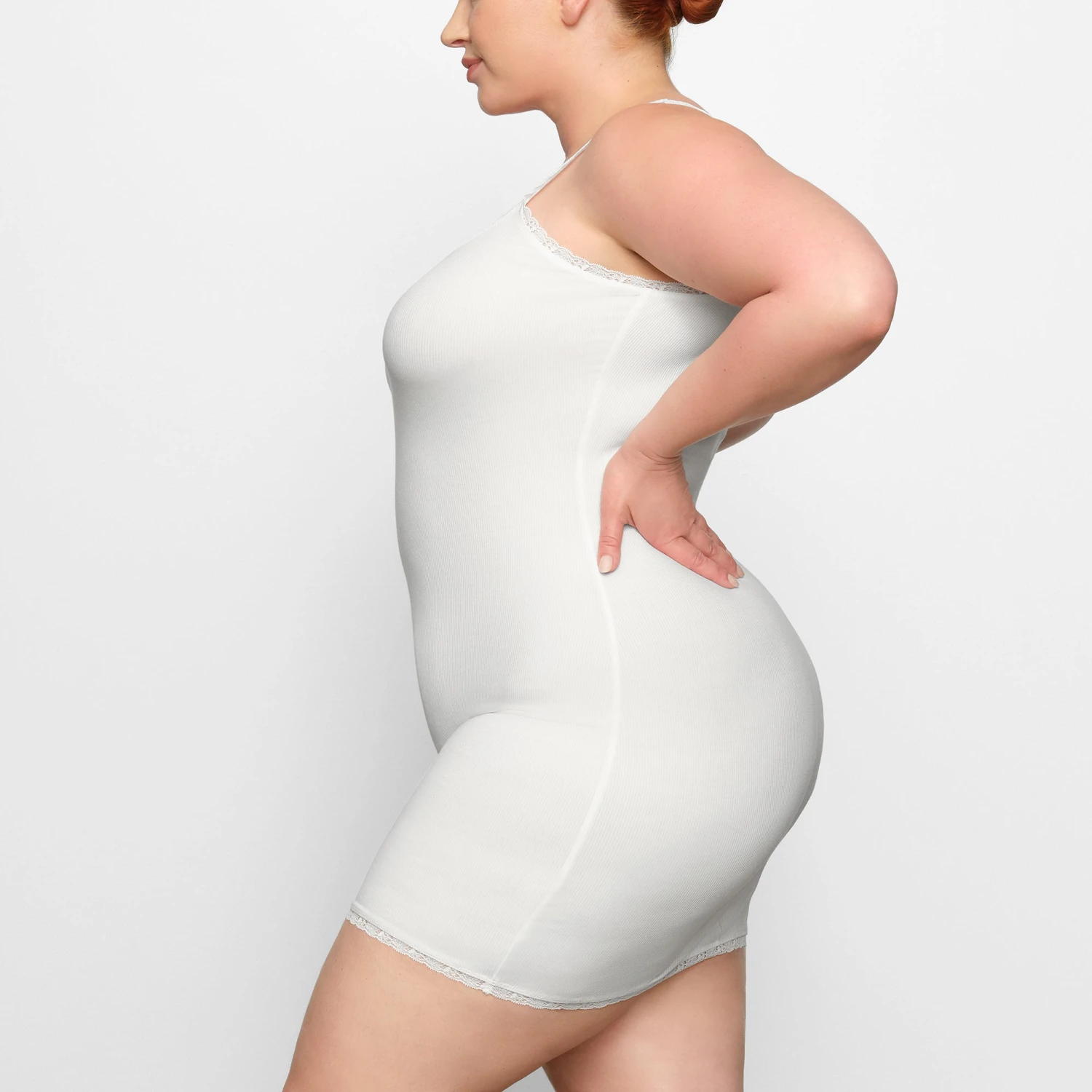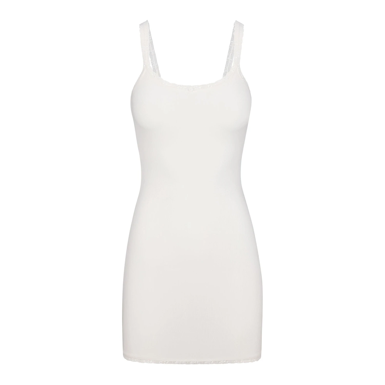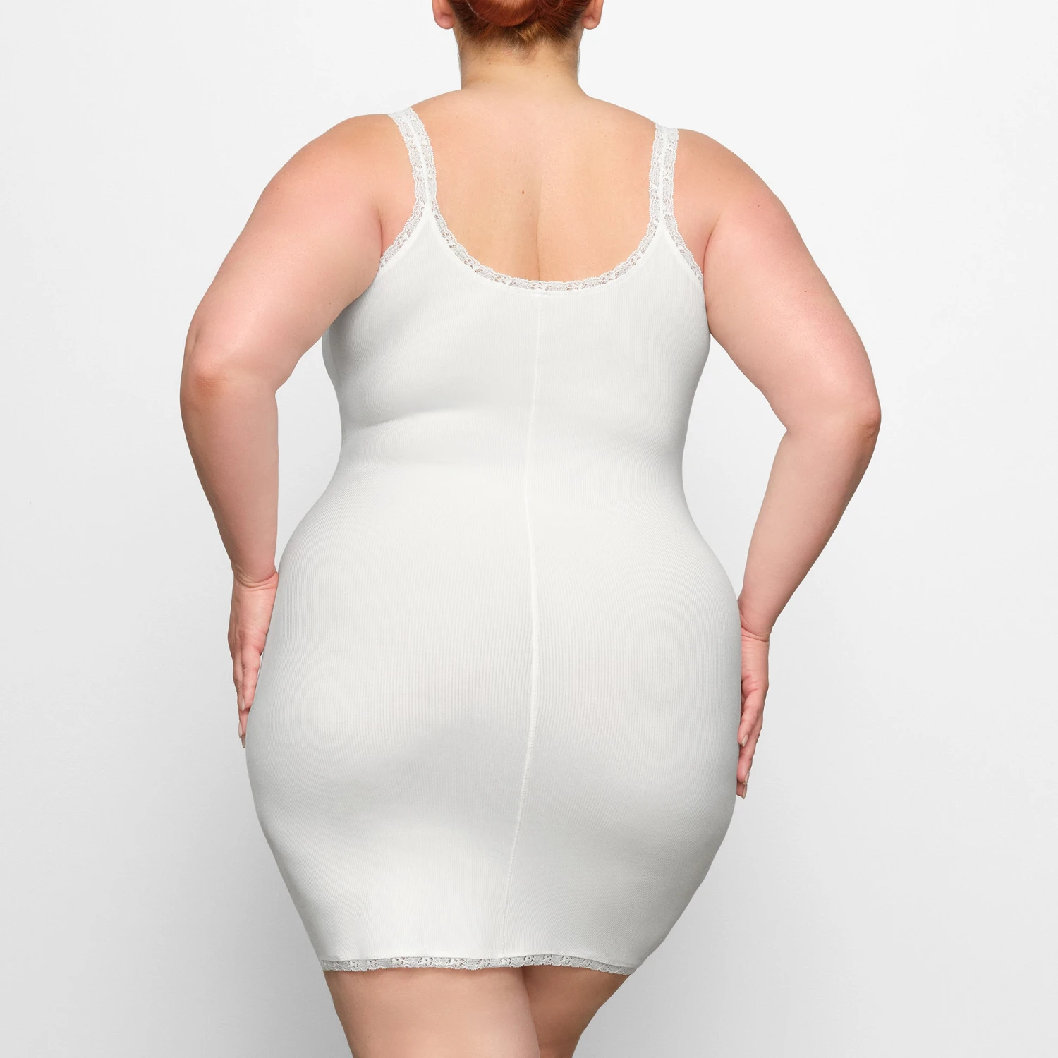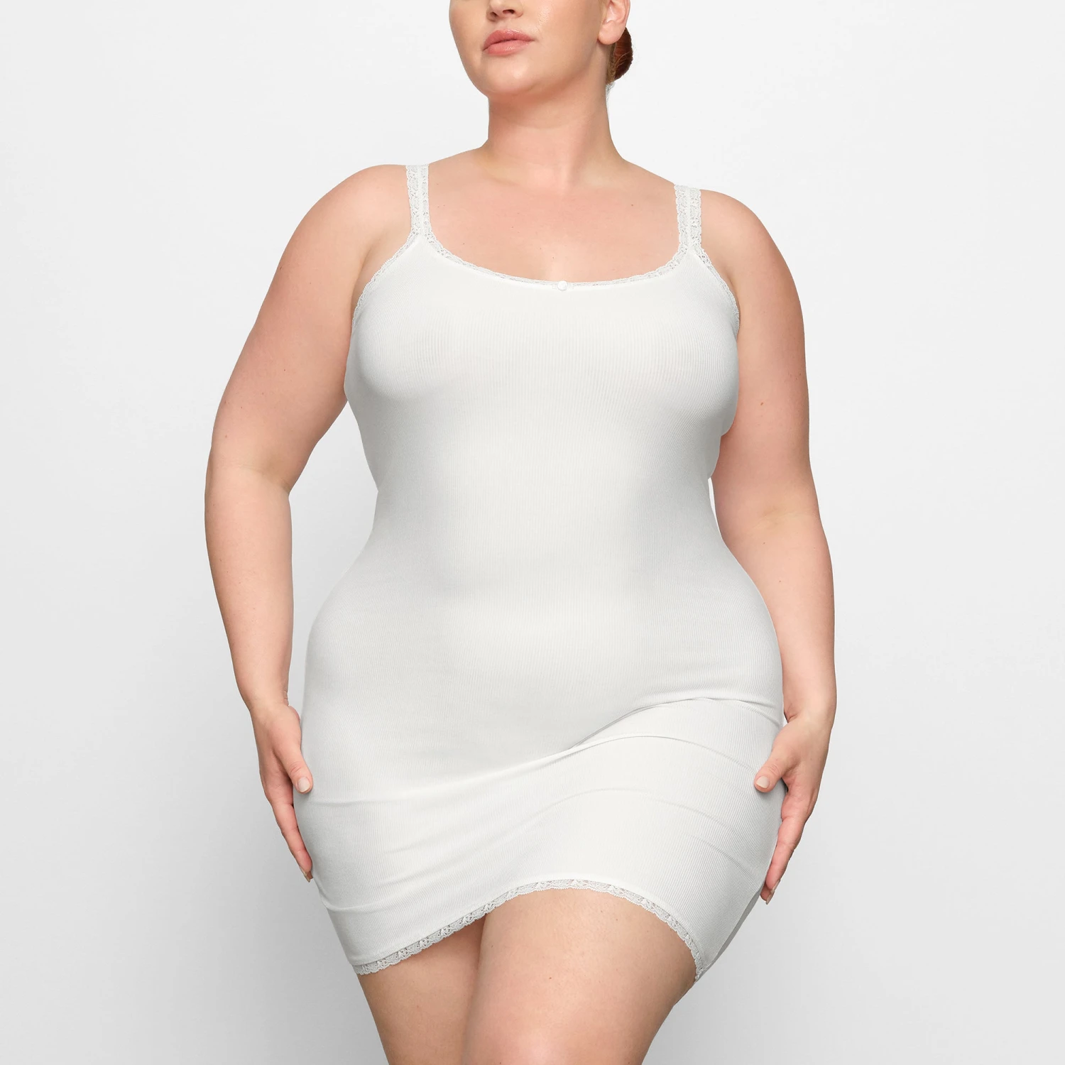 has the prettiest lace details along the neckline, straps, and bottom edge. Fits true to size.
