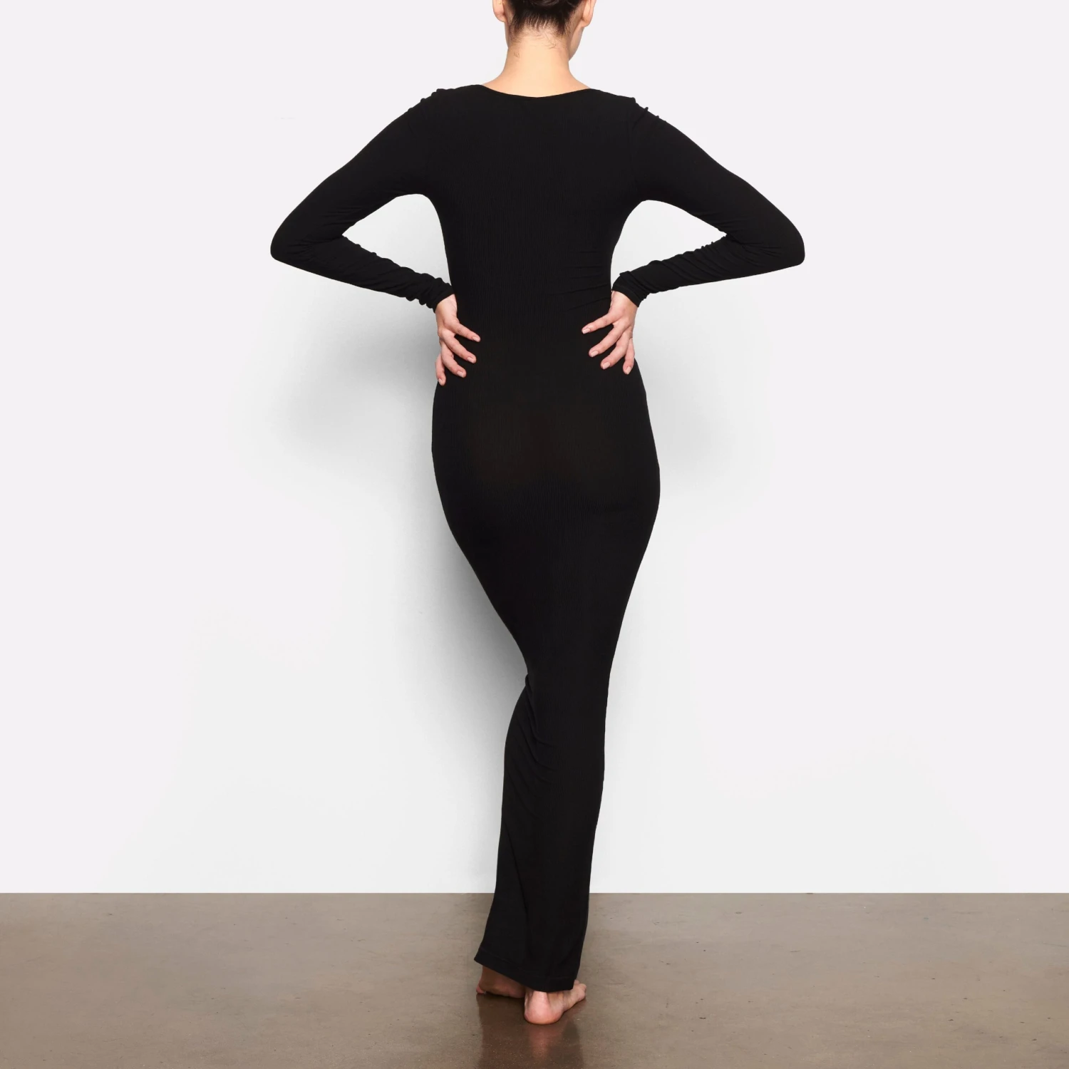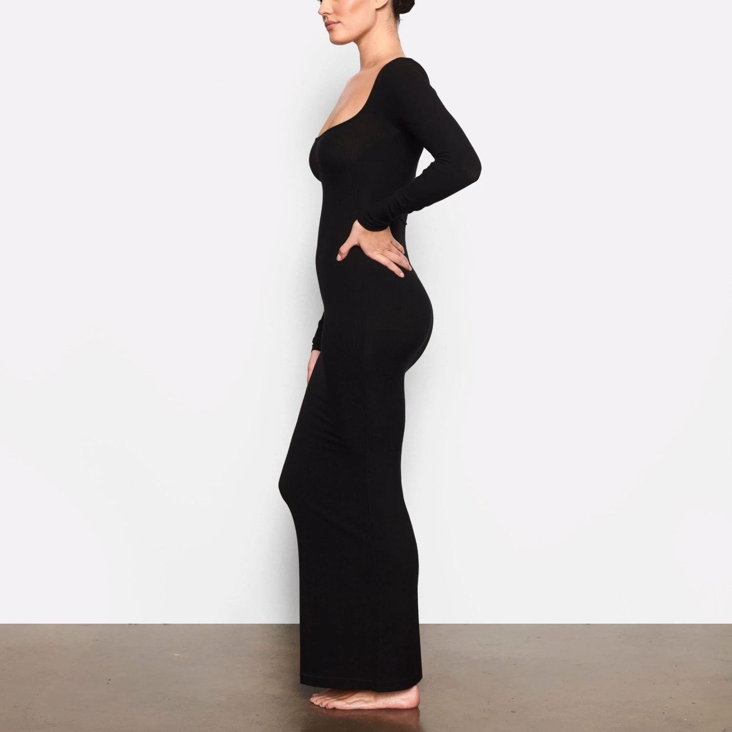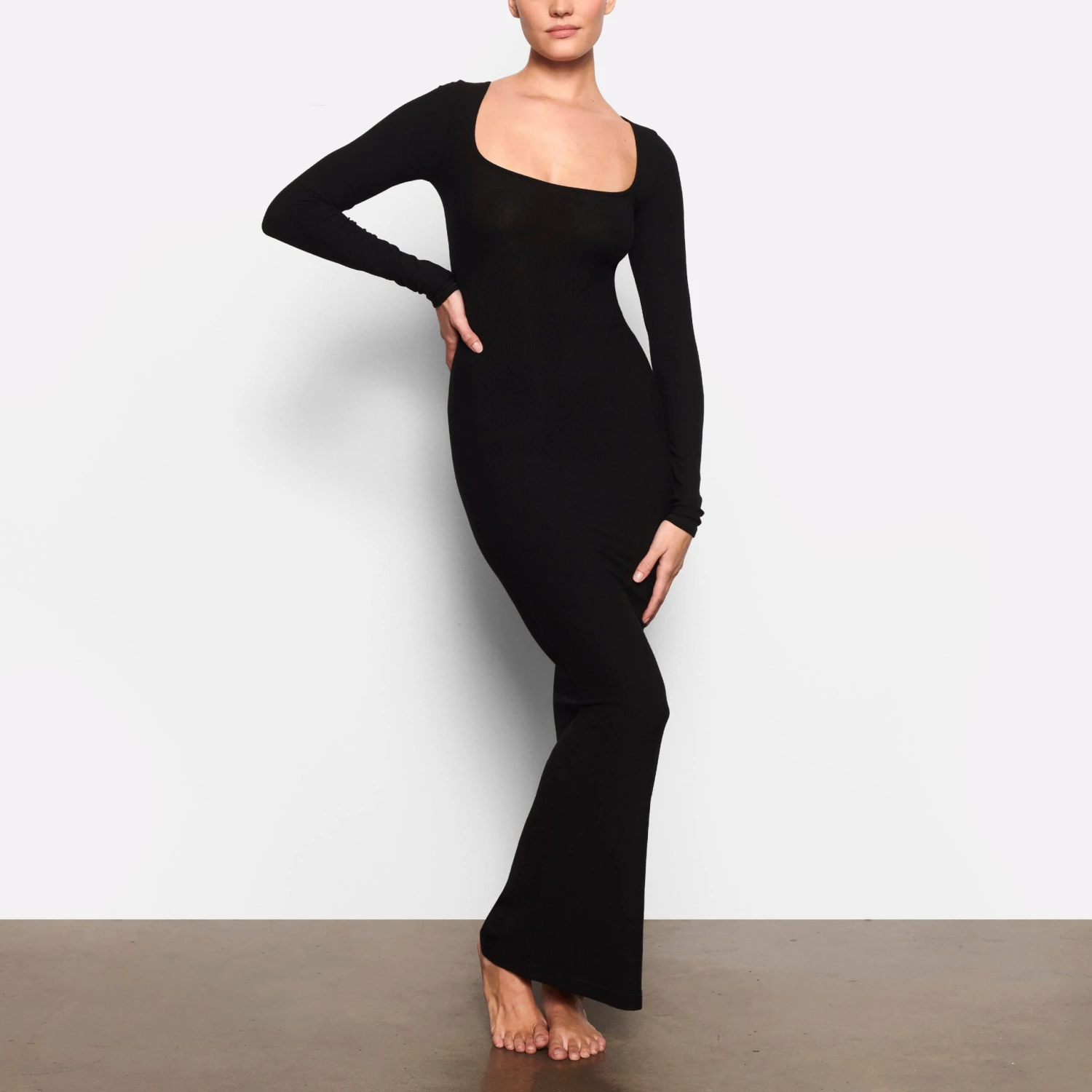 you know and love, but now with sleeves. Embrace every single one of your curves with its slinky silhouette, ultra-flattering square neckline, and drapey long ribbed slip.