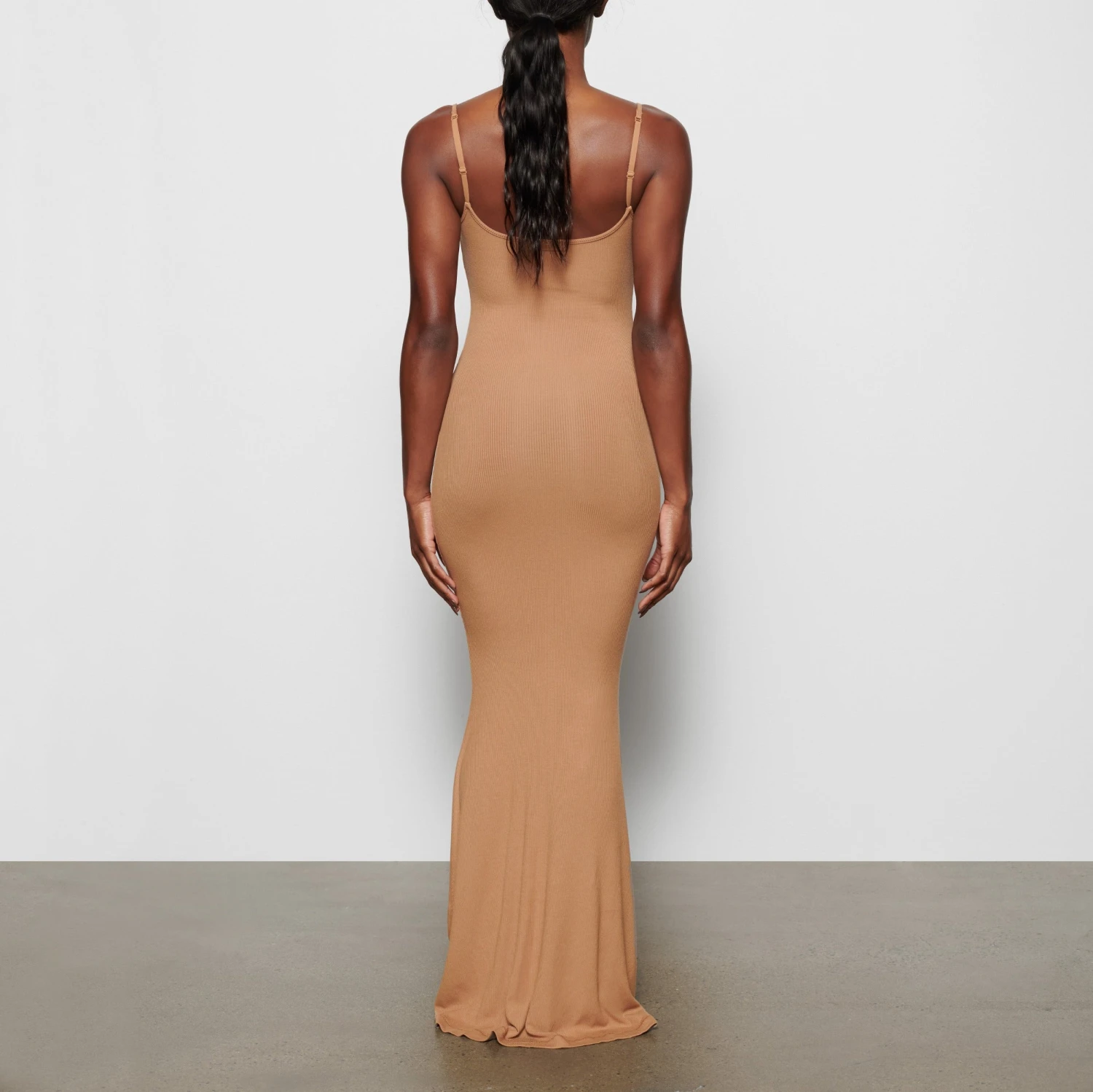 with this super soft, drapey slip dress that offers a comfortable, body-hugging fit. This maxi length