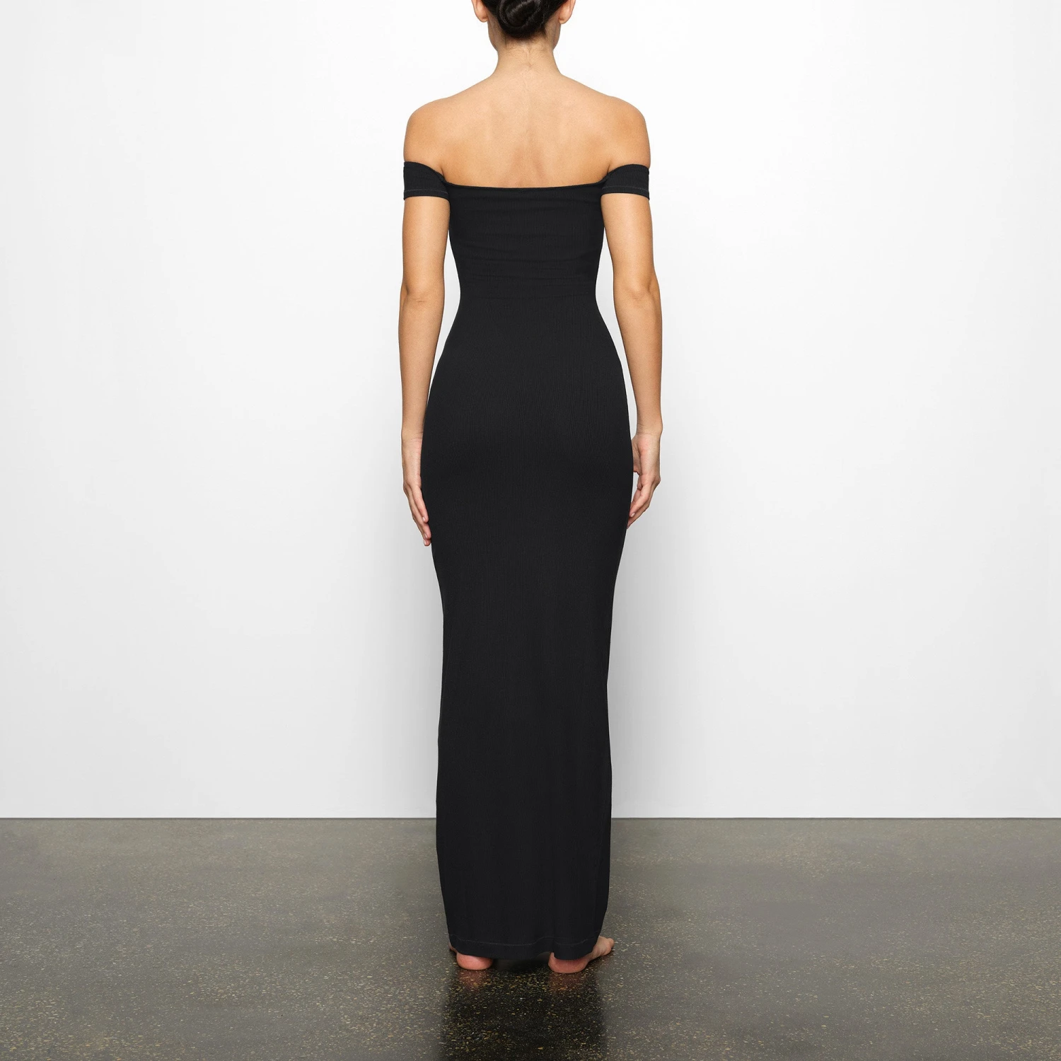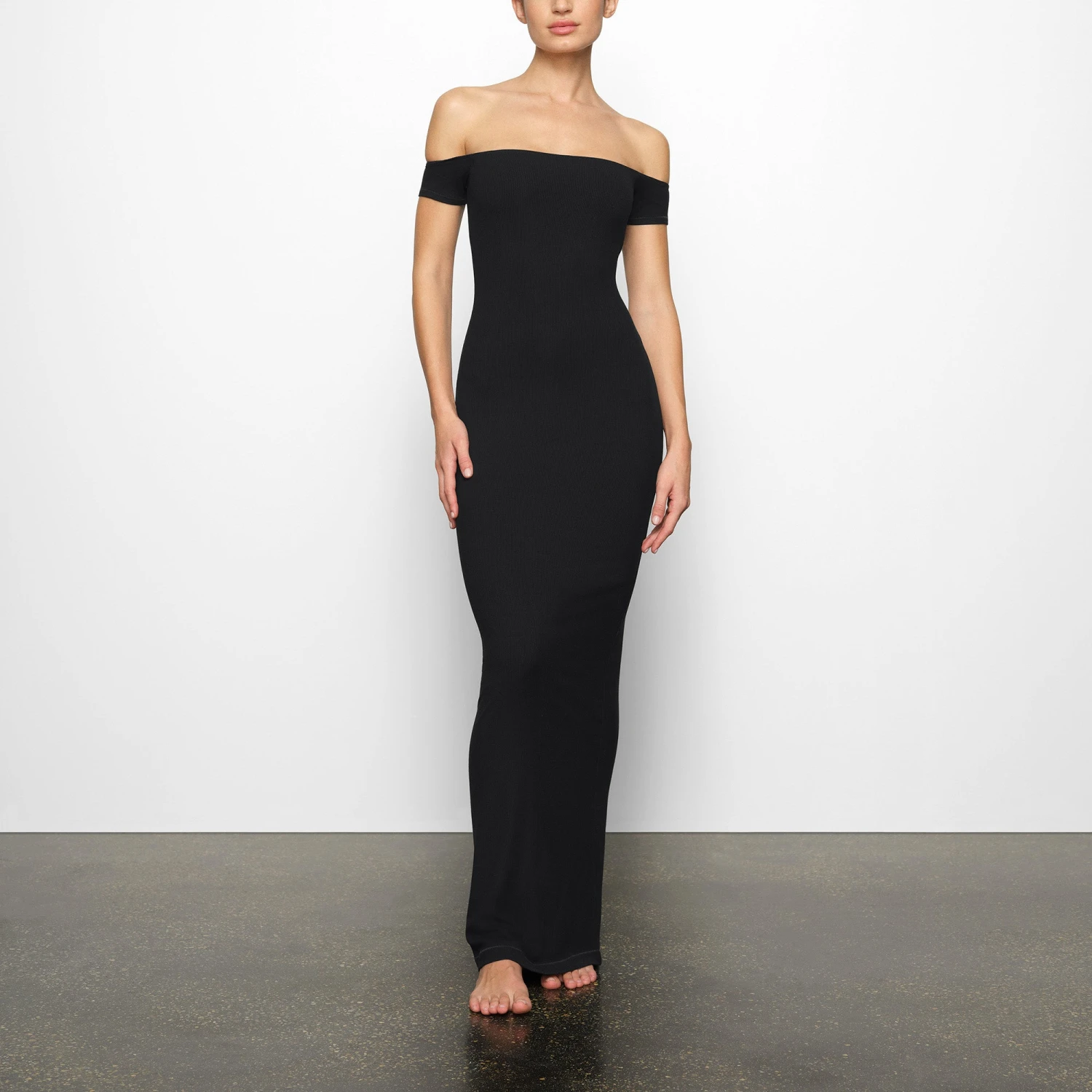 you know and love updated with an elevated off-the-shoulder design and built-in
