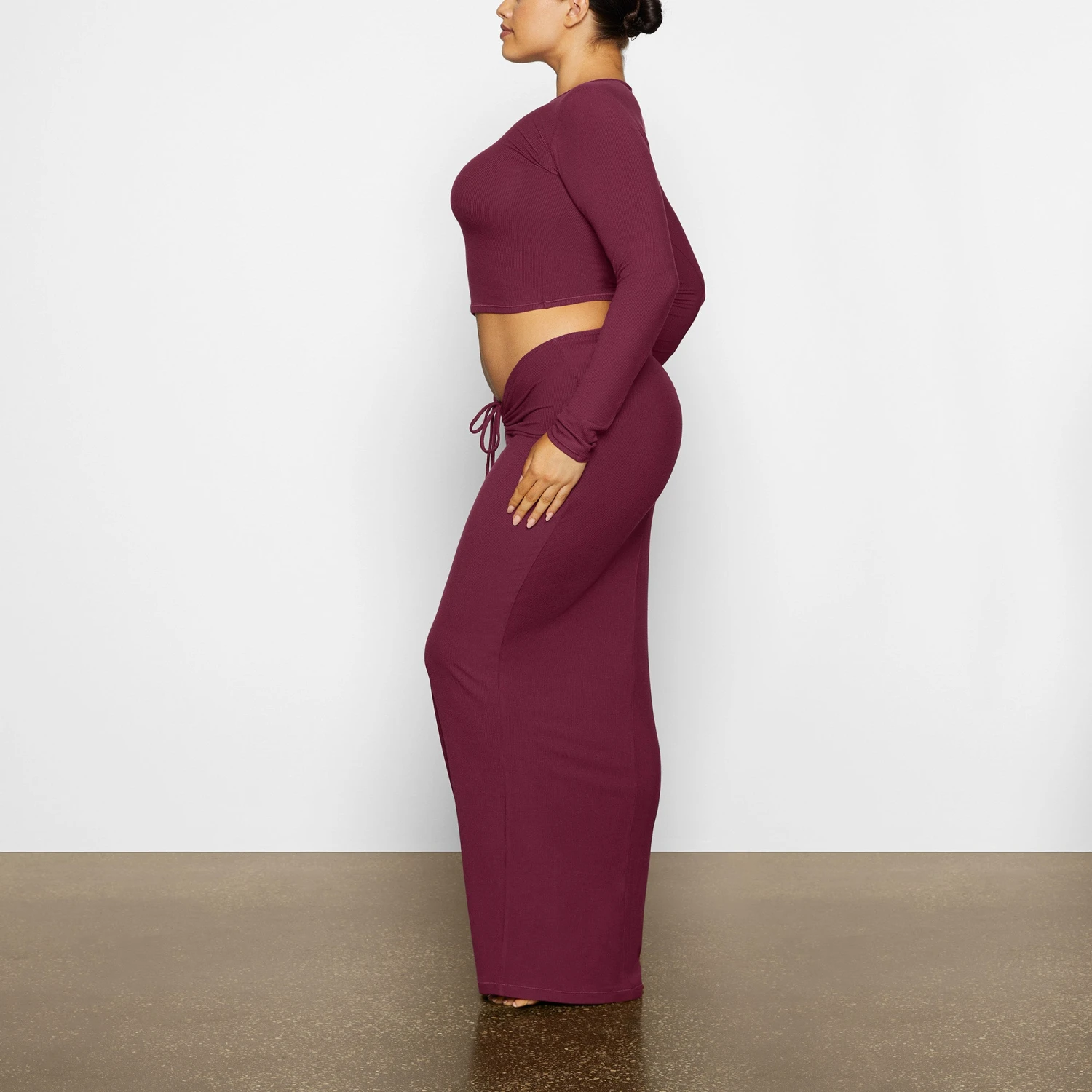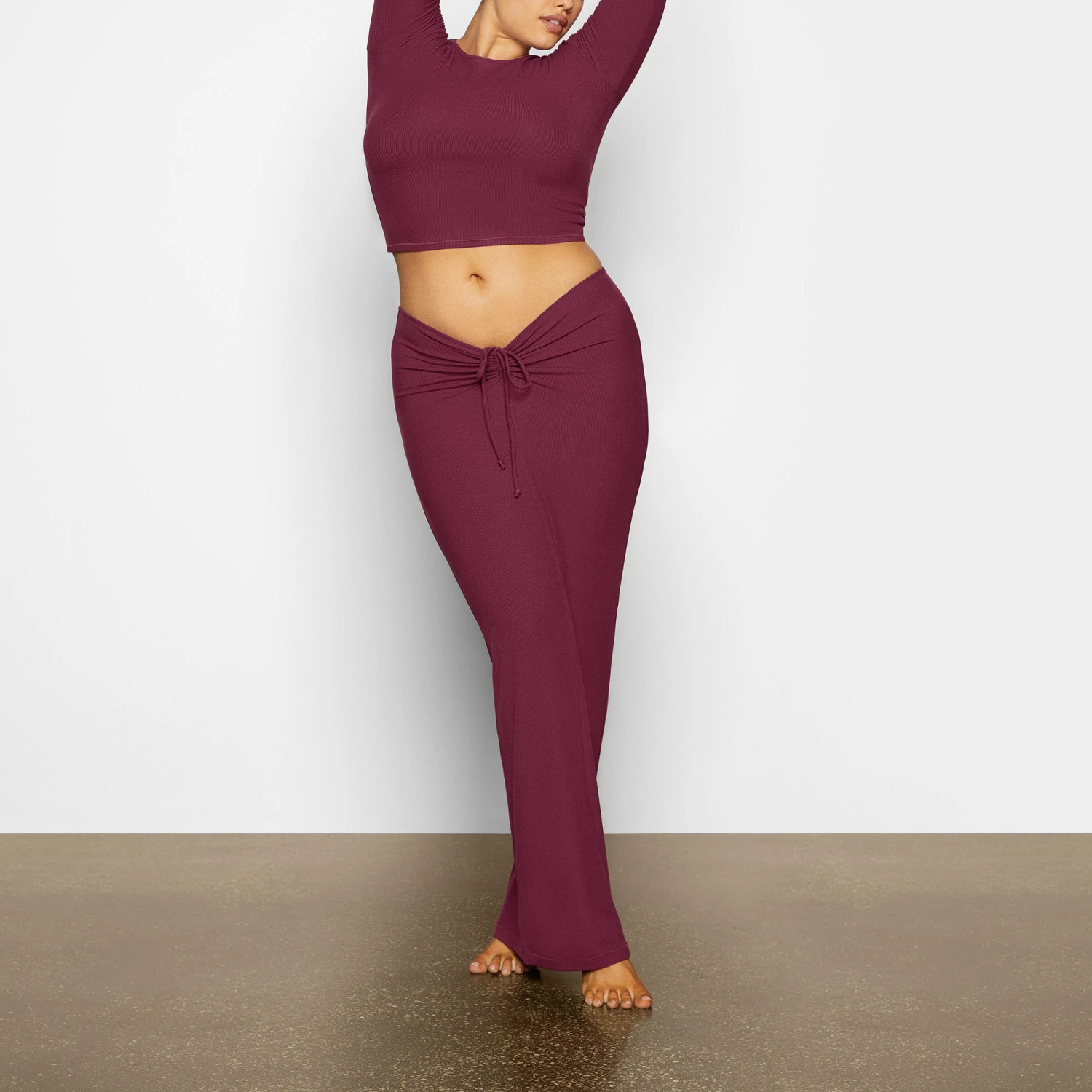 SOFT LOUNGE RUCHED LONG SKIRT | WINE