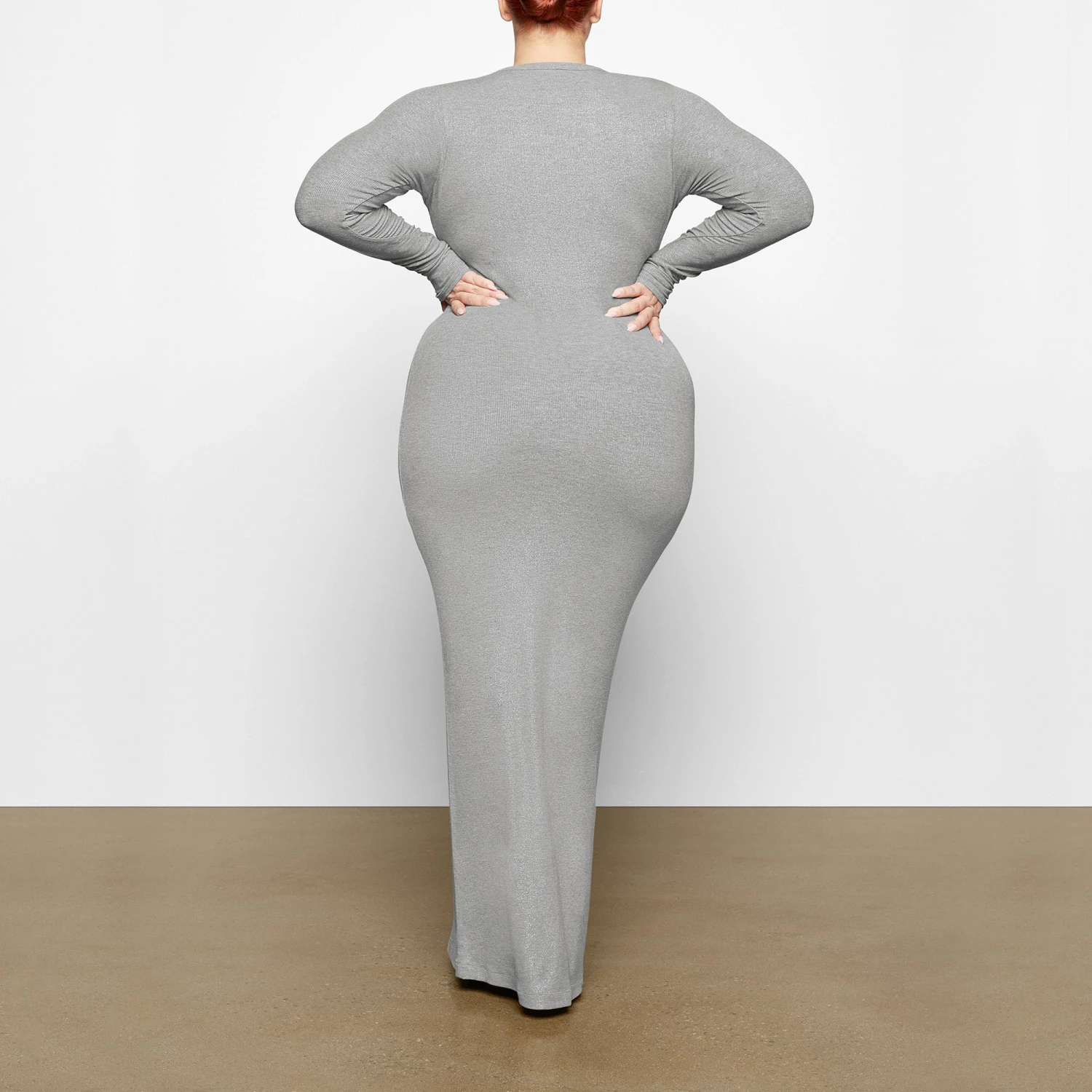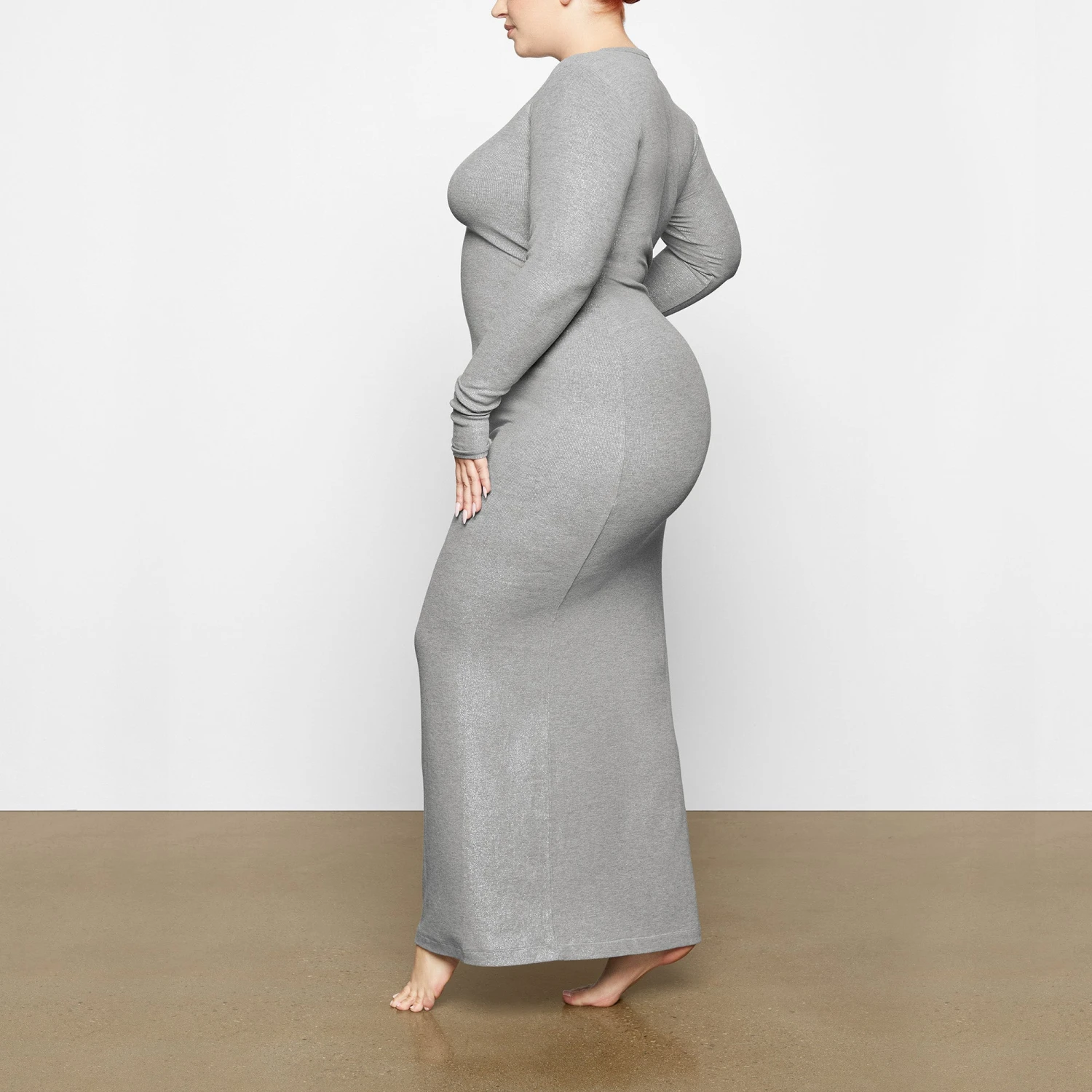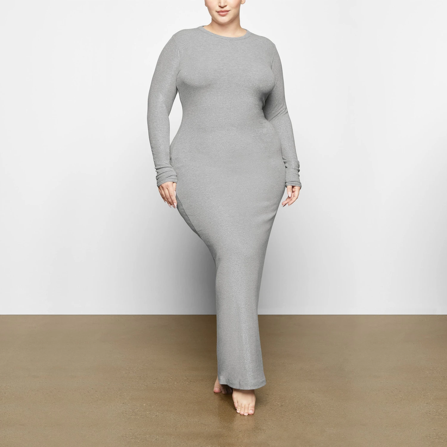 now has the perfect amount of shimmer and a classic crew neck silhouette. You’ll love how this body-hugging maxi dress fits and feels every time you slip it on. Fits true to size.