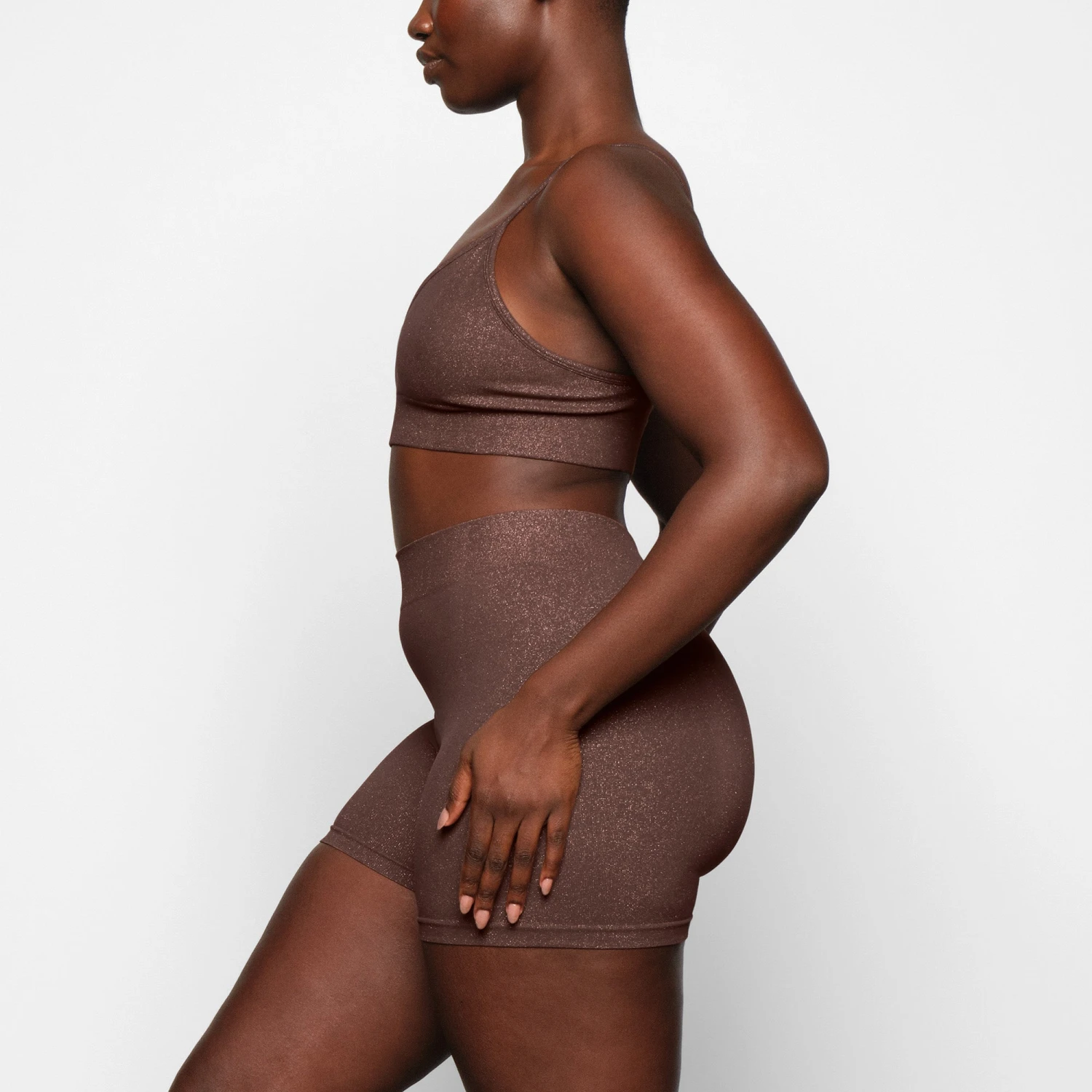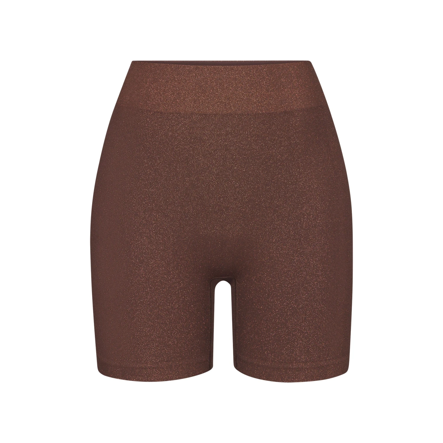 The perfectly sparkly shorts you’ve always needed. These ultra-soft, buttery-smooth shorts hit at the natural waist and feature seamless construction, full back coverage, and a 100% cotton gusset. Fits true to size.