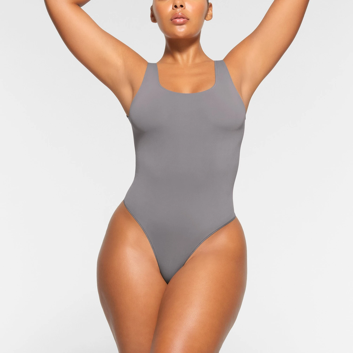 is the perfect everyday essential for light smoothing and support for your waist. Features a double scoop neck and a thong back that makes it seamless under