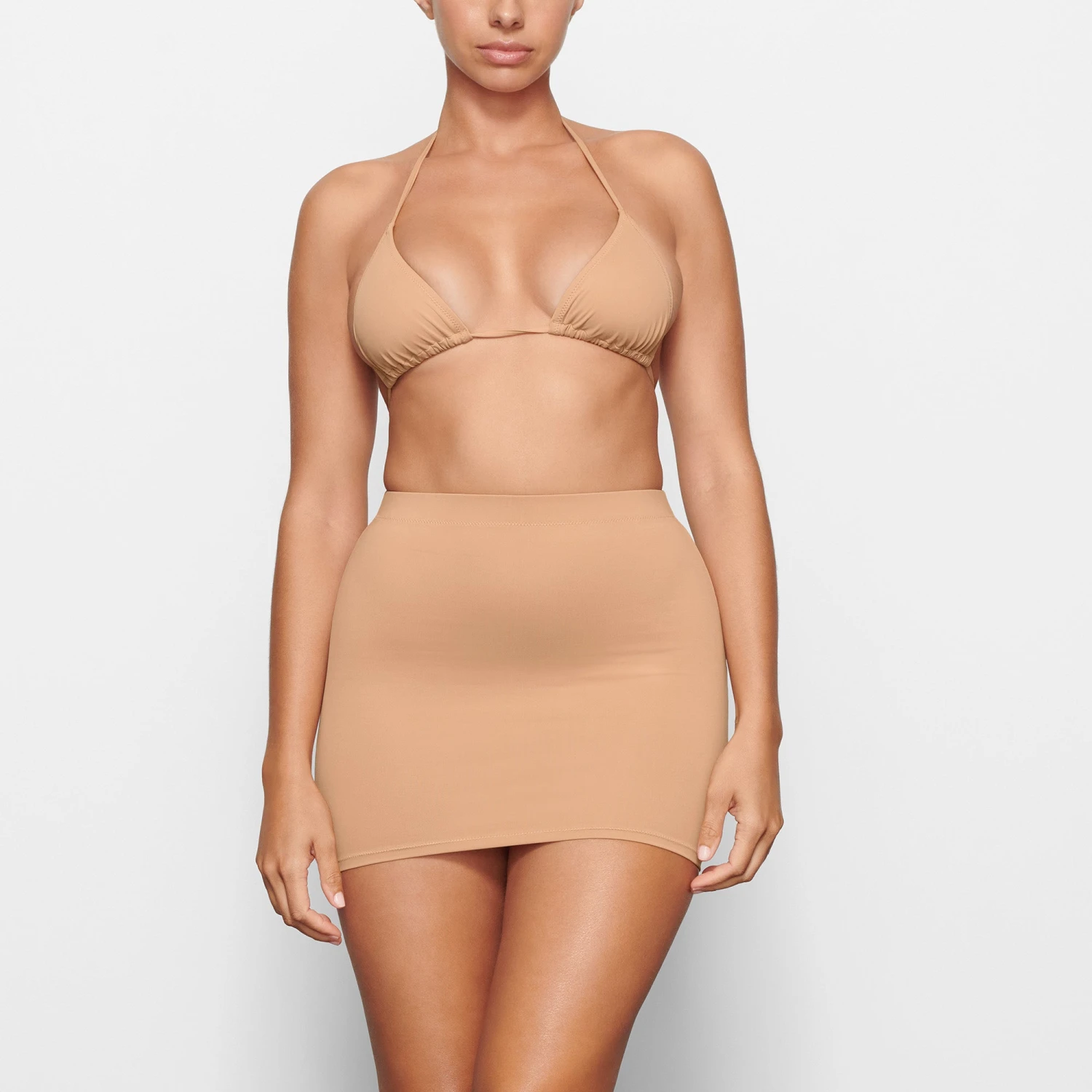 A unique swim piece designed for high-style solutions. Layer this form-fitting tube skirt over your one-piece or