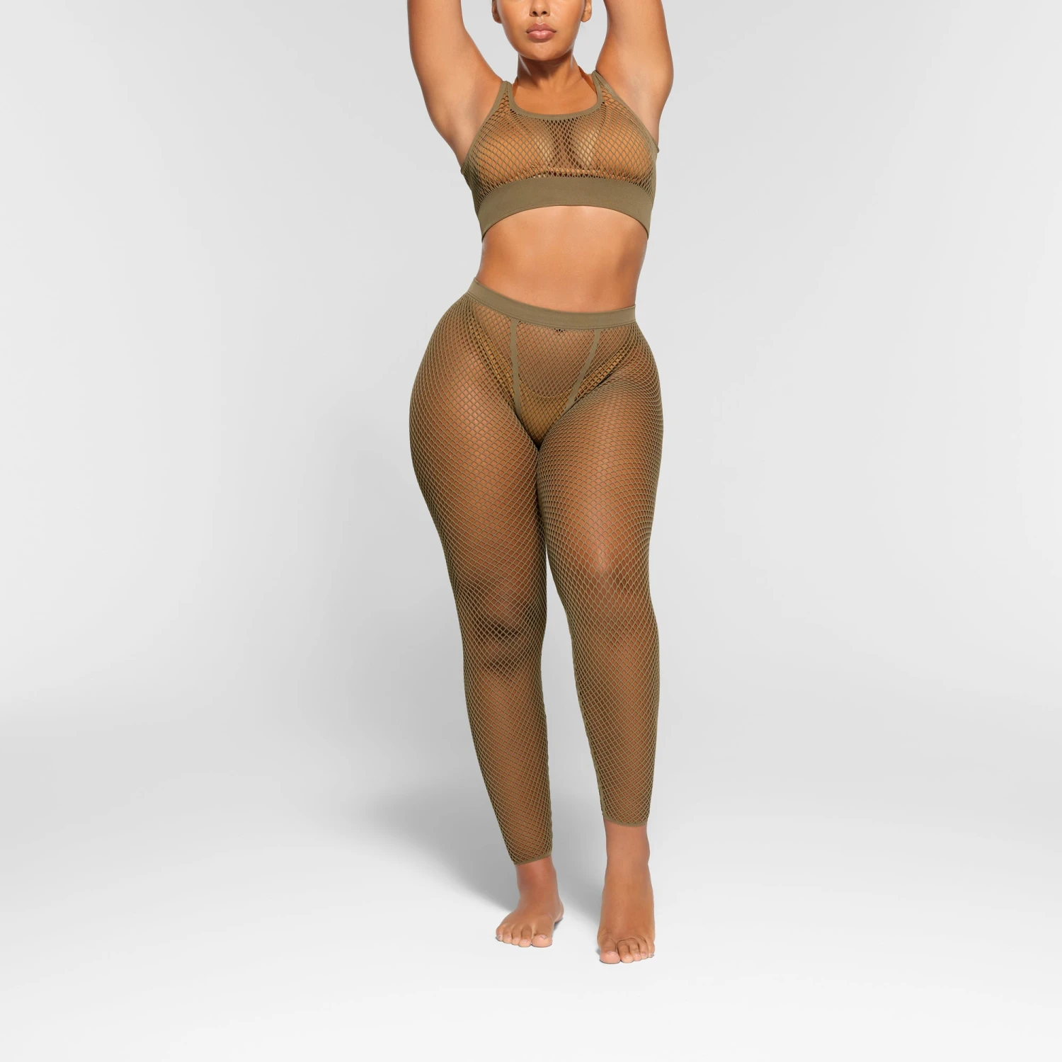 These full-length, ultra-stretchy open knit